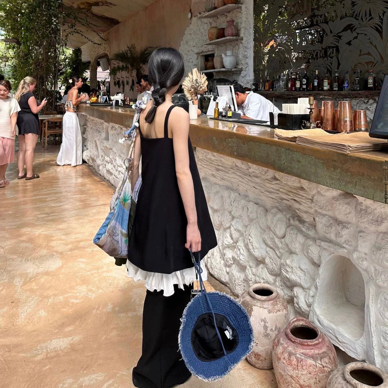 ♡スクエアーネック バイカラーフリル レイヤースタイル サスペンダー ミニドレス