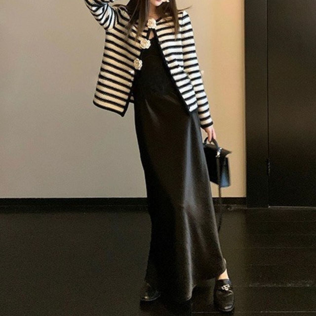 大人エレガント フラワーモチーフ ボーダーcardiganです♡