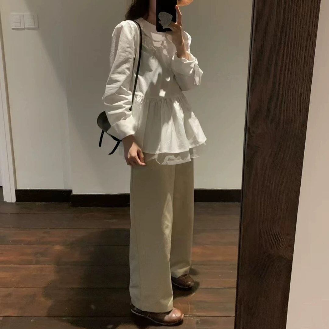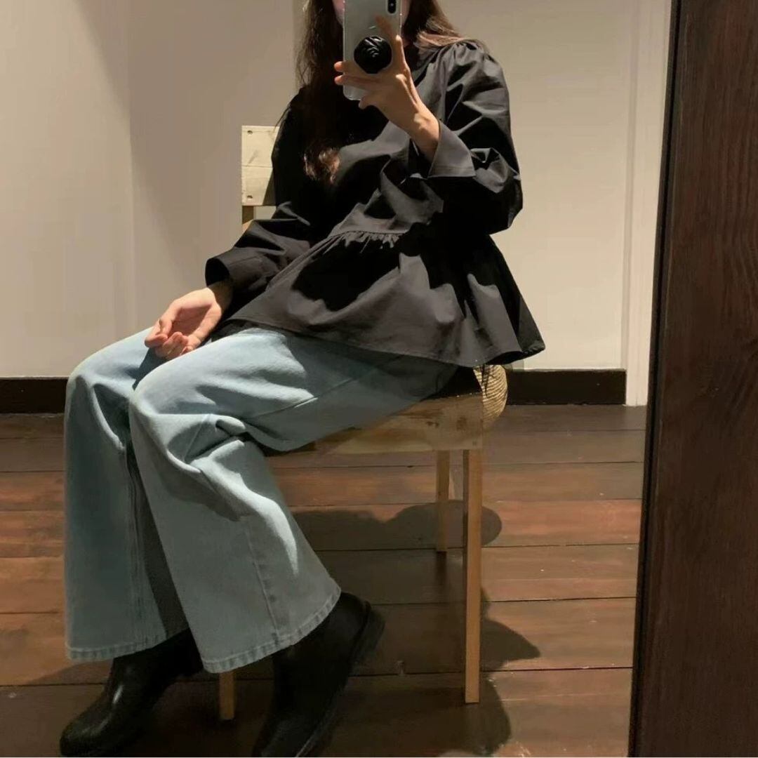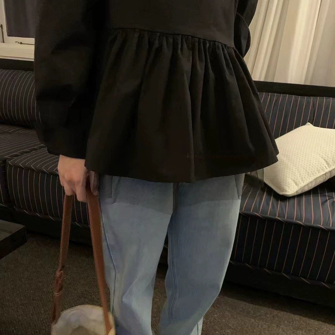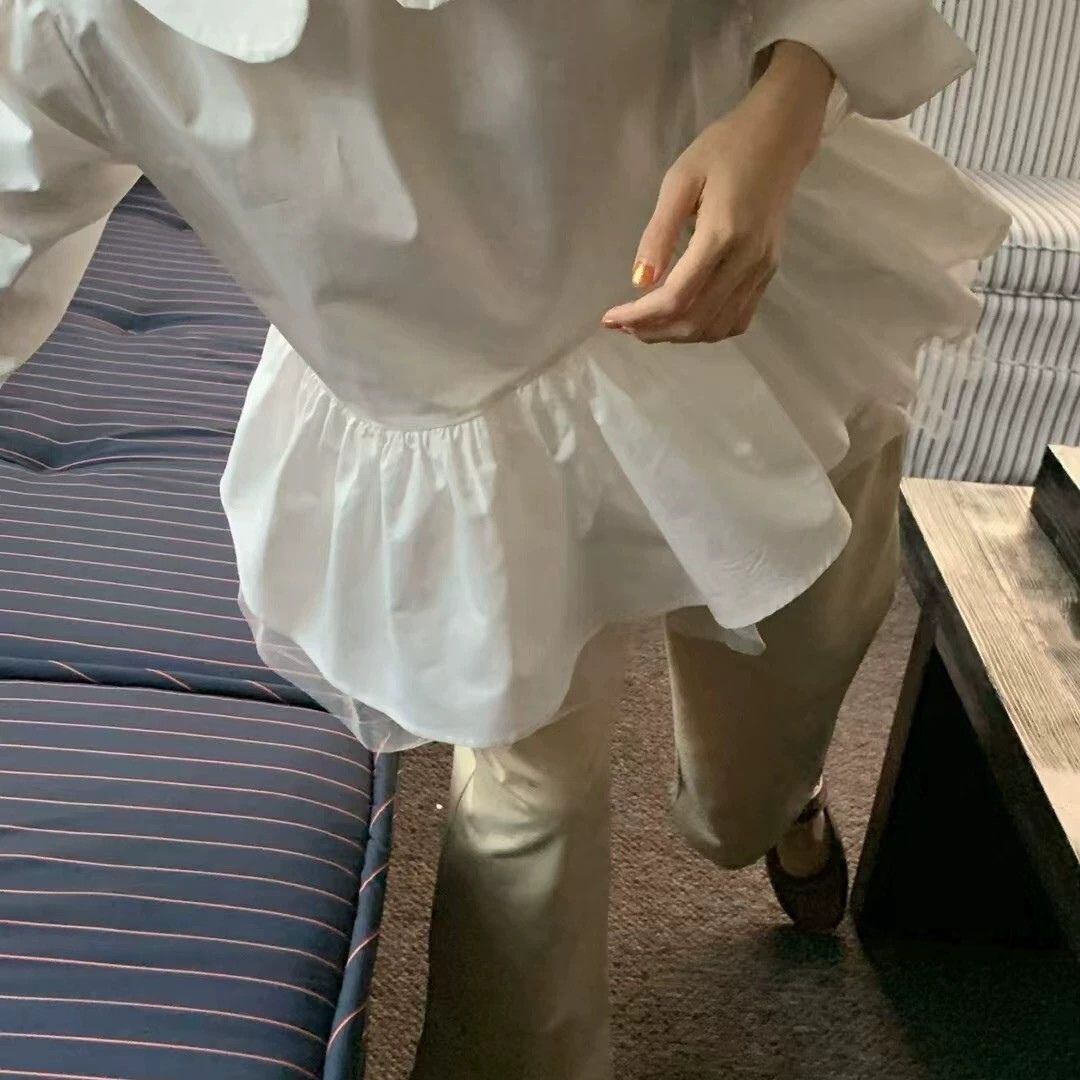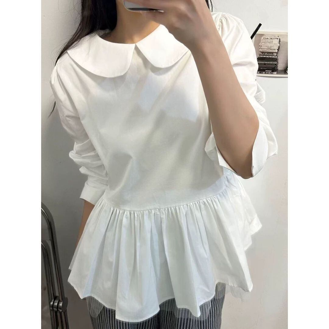 ♡フラットカラー 後ファスナー 切替ギャザーフレアー アンダーチュール ブラウス