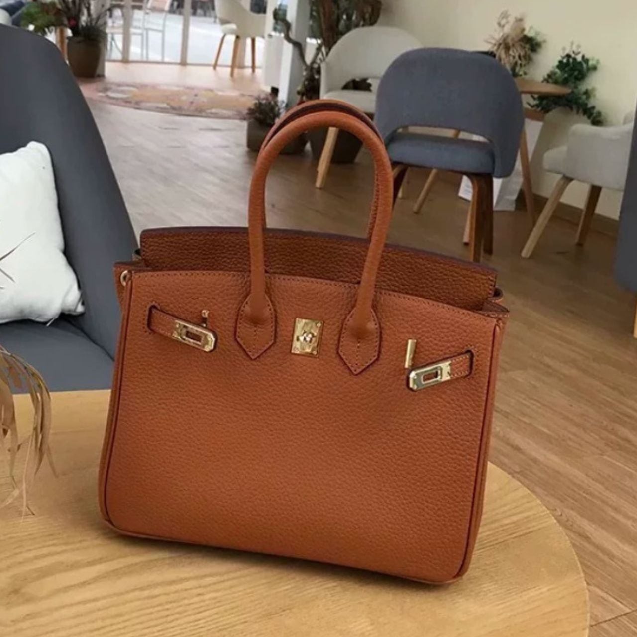 ♡牛革グレインレザー(細かい凹凸) ゴールドバックル 2ハンドル ストラップ付