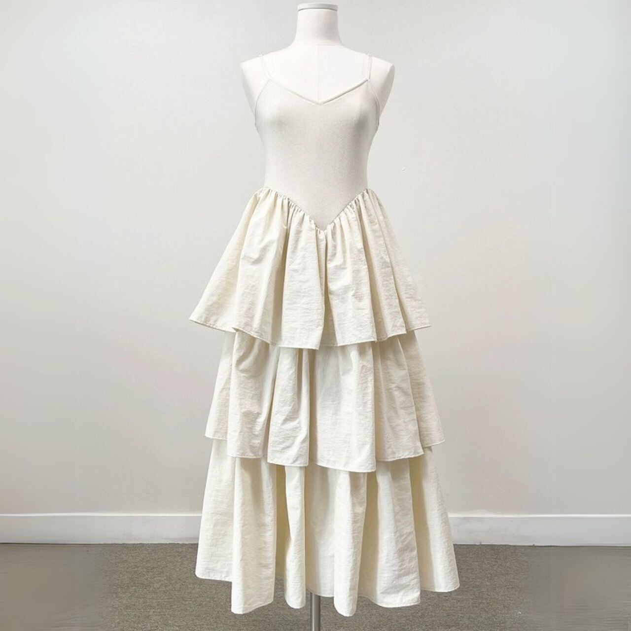 ♡トップ カット素材 ジャストフィット & ふわふわボトム3段フリル 後ファスナー