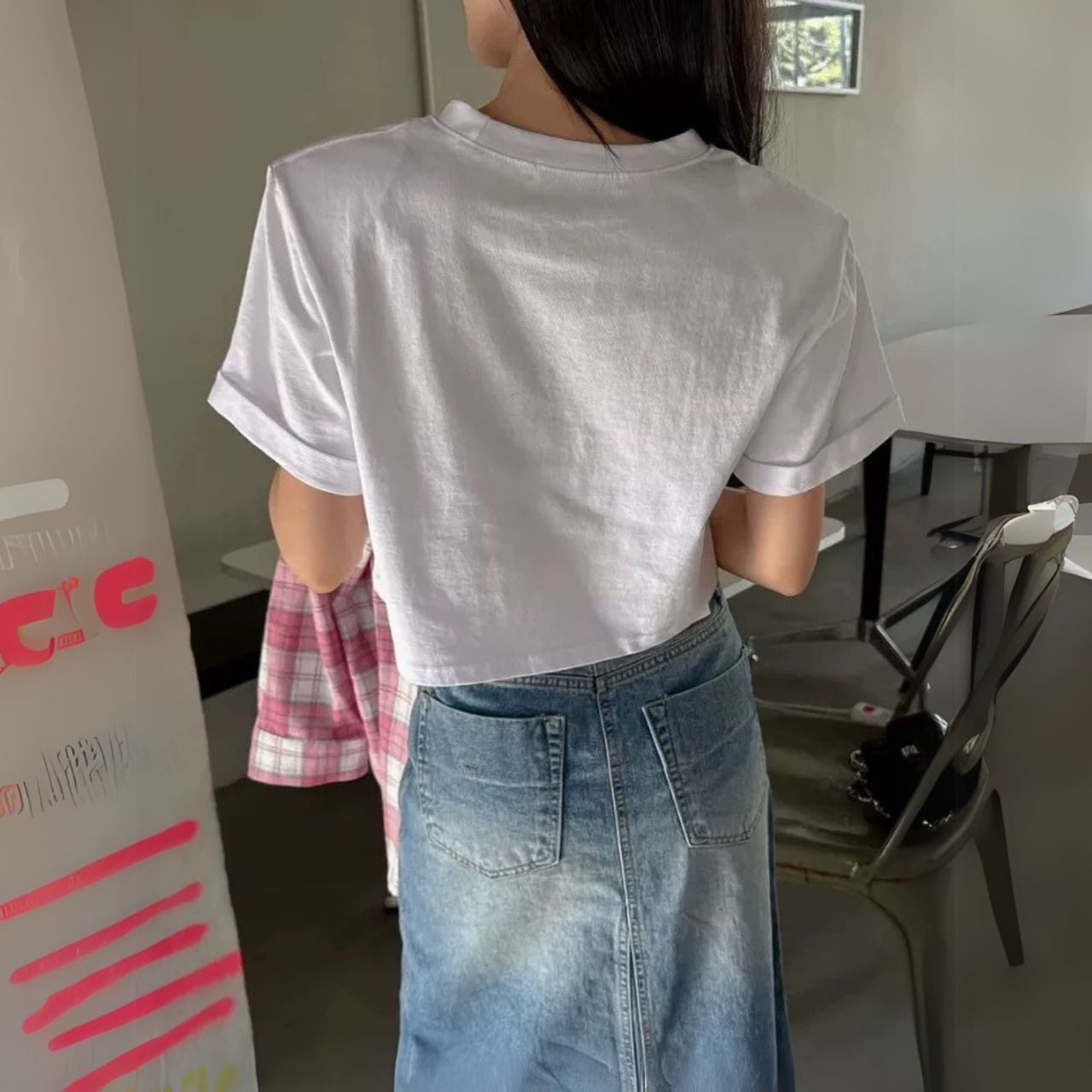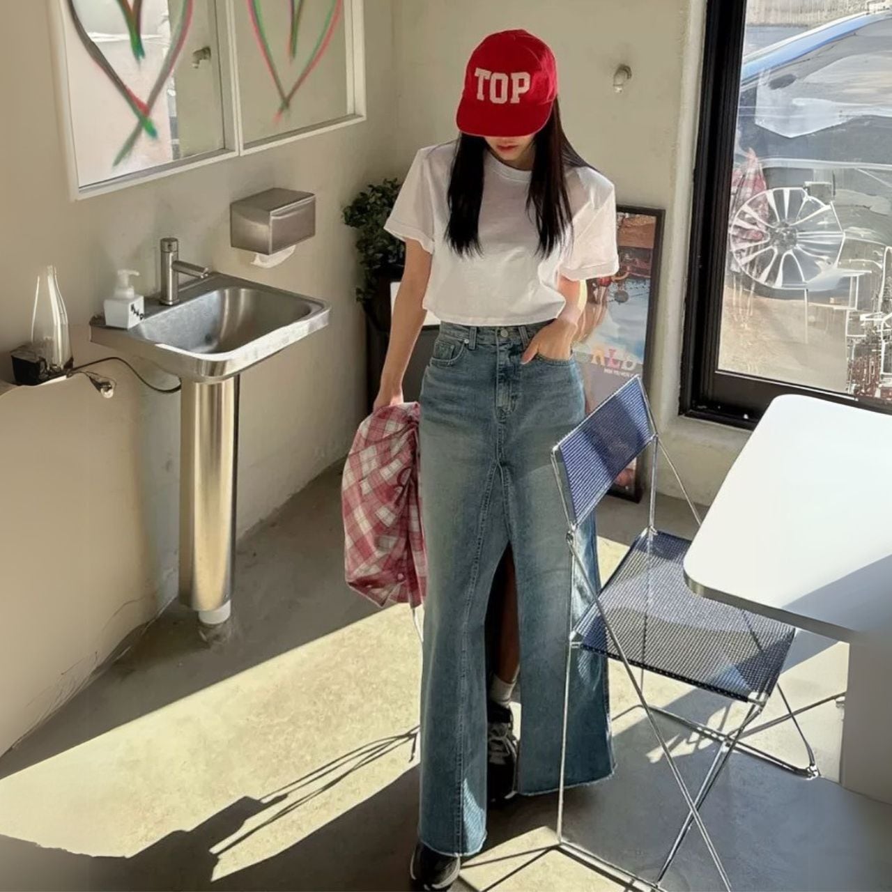 ♡ウォッシュドデニム 前ロングスリット(重なりが有りロングスリットの割には見え難い)