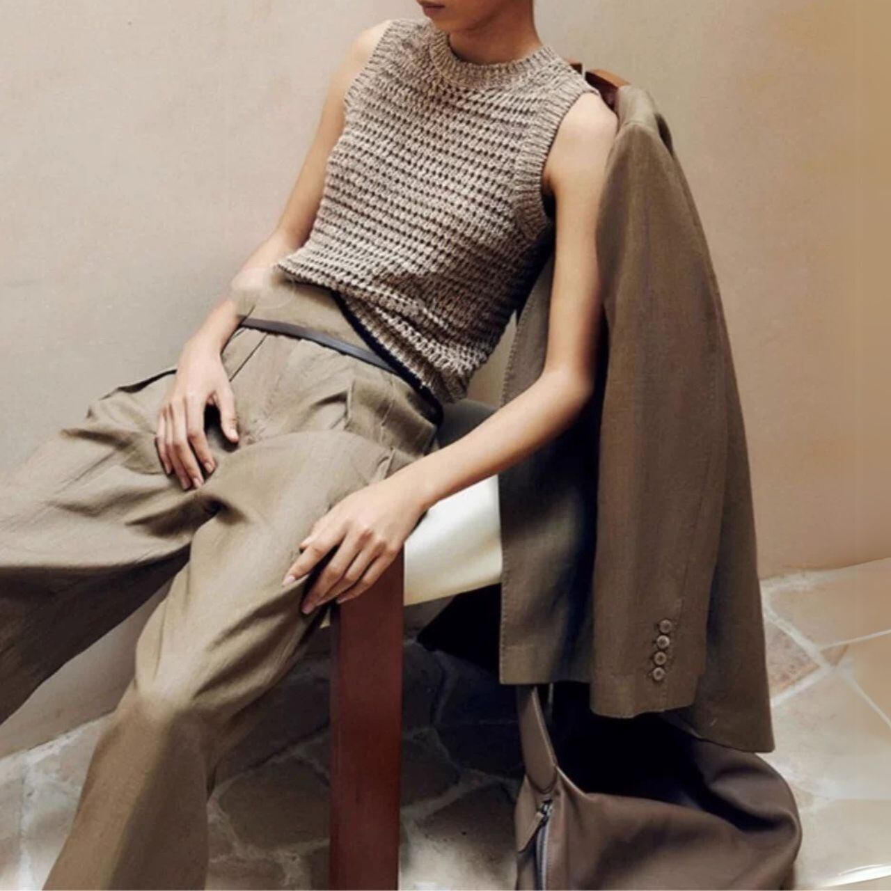 大人 カジュアル 透かし編み ノースリknitです♡