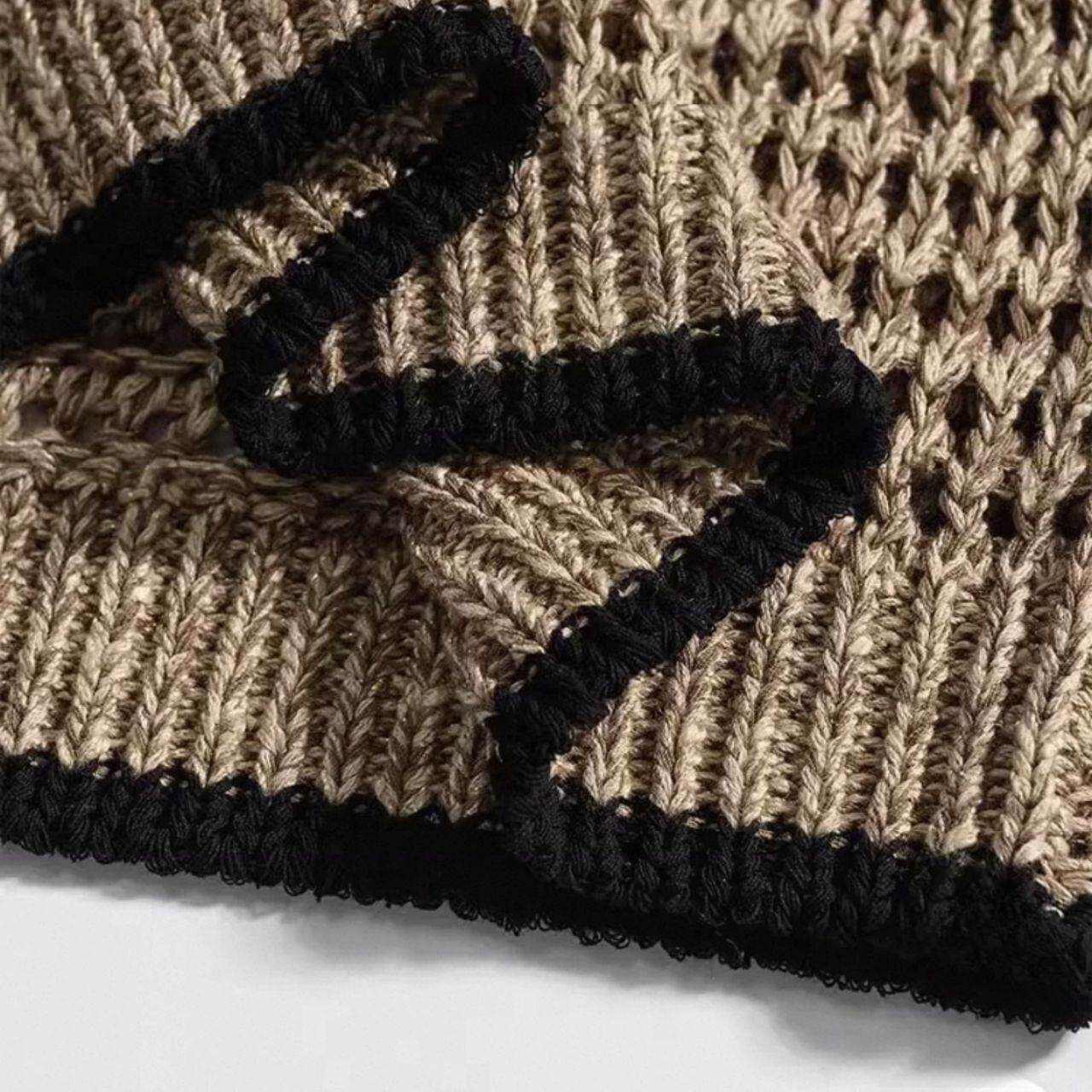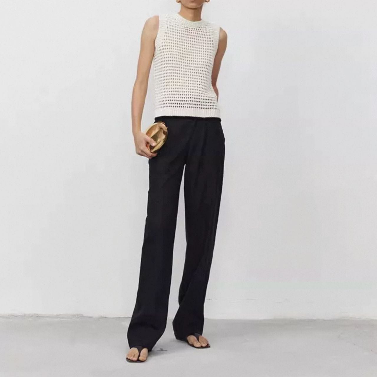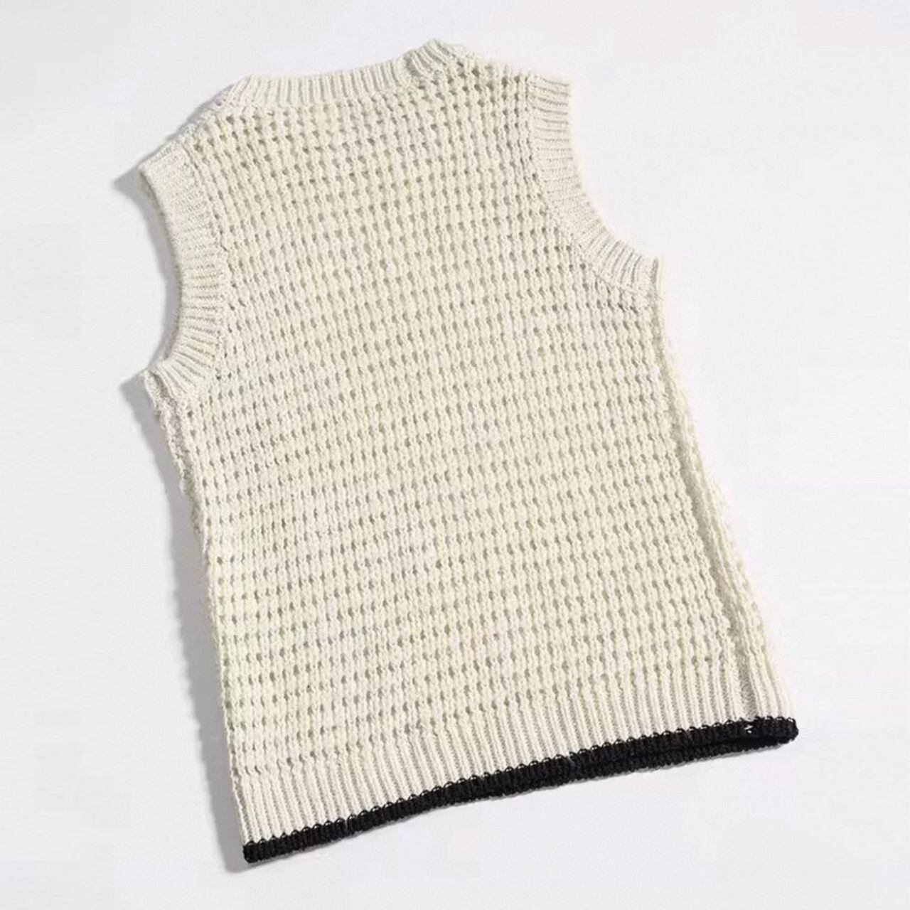 小さめラウンドネック ノースリ 透かし編み プルオーバーニット