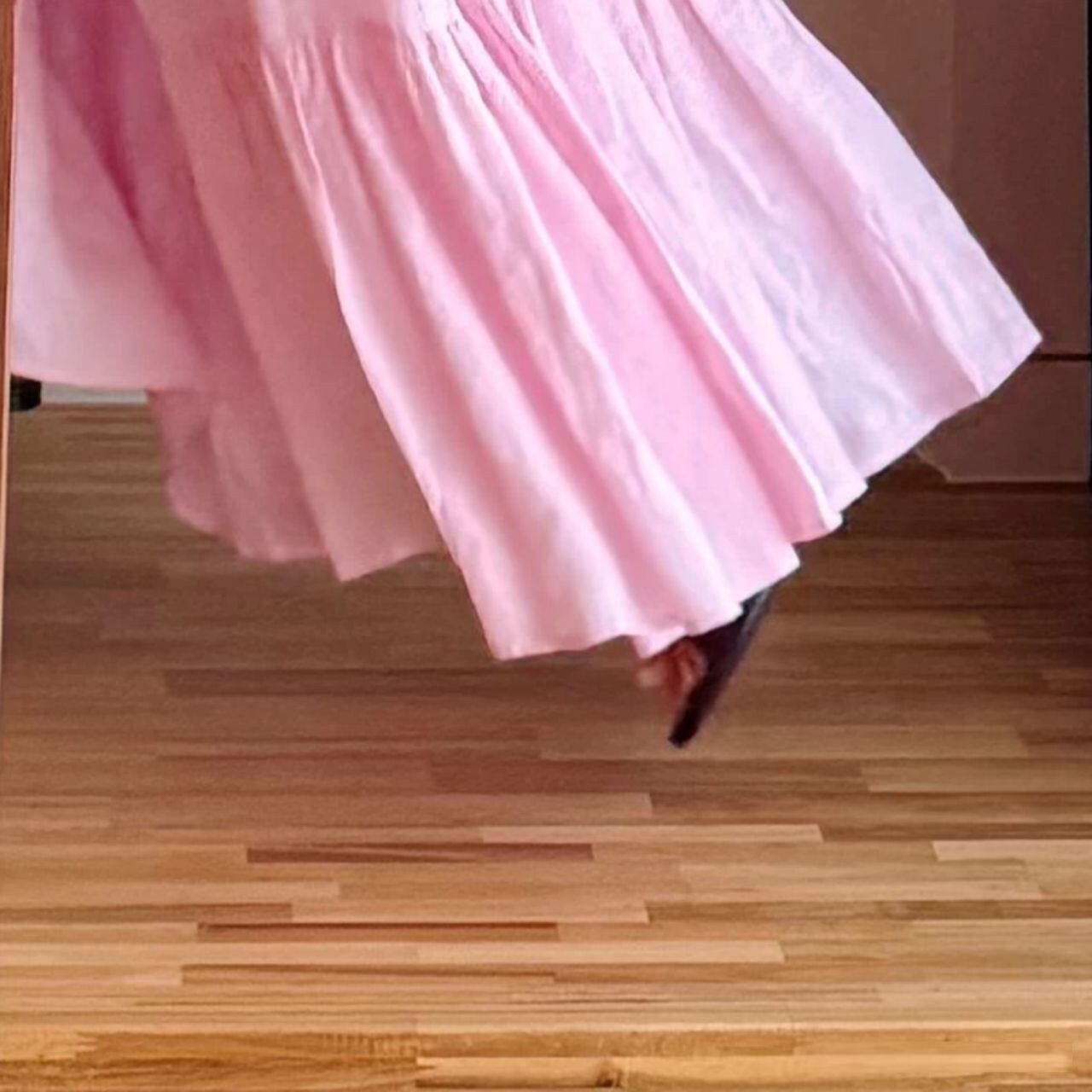♡上品ピンク キャミ バックレス 裾 切替 スイングドレス シンプルデザイン