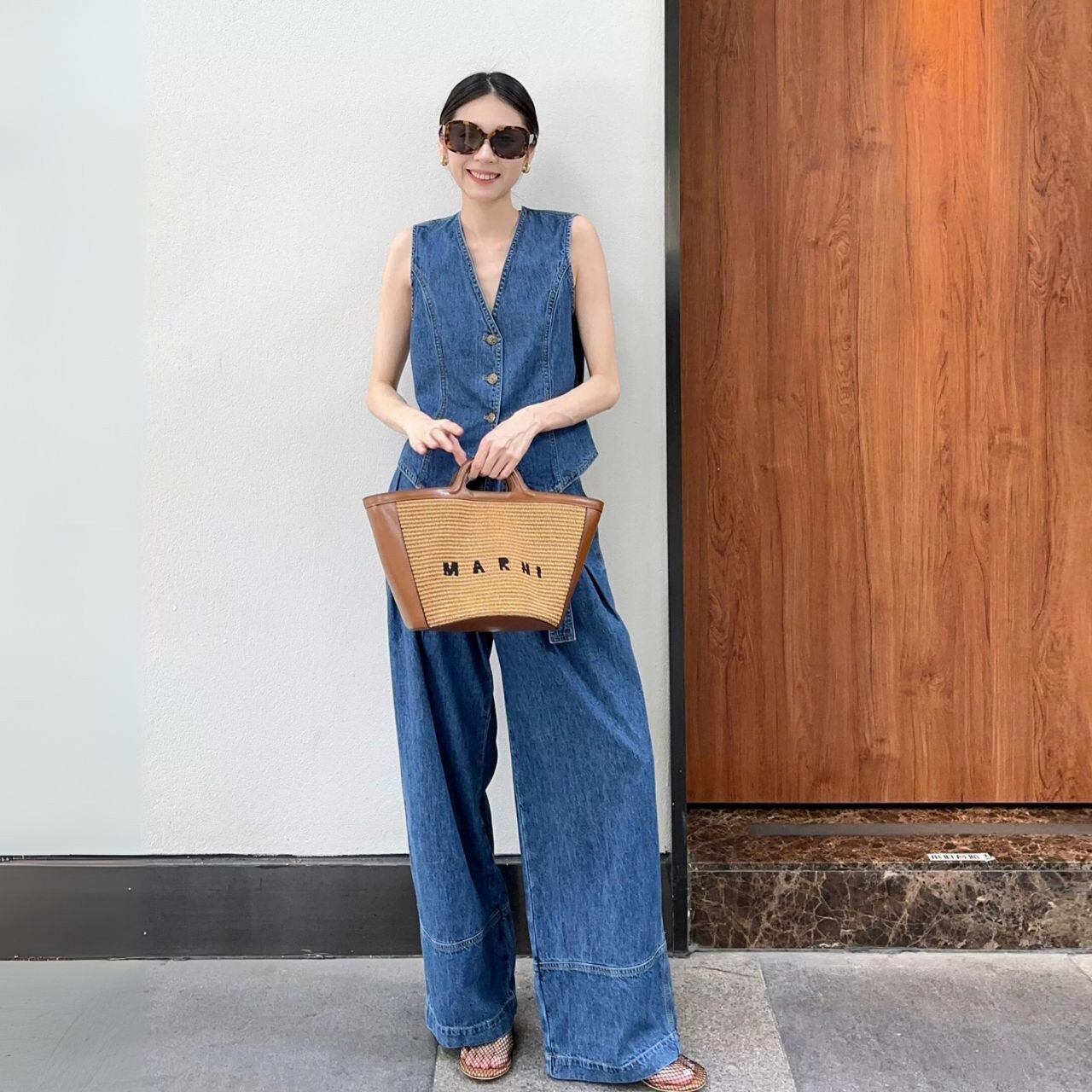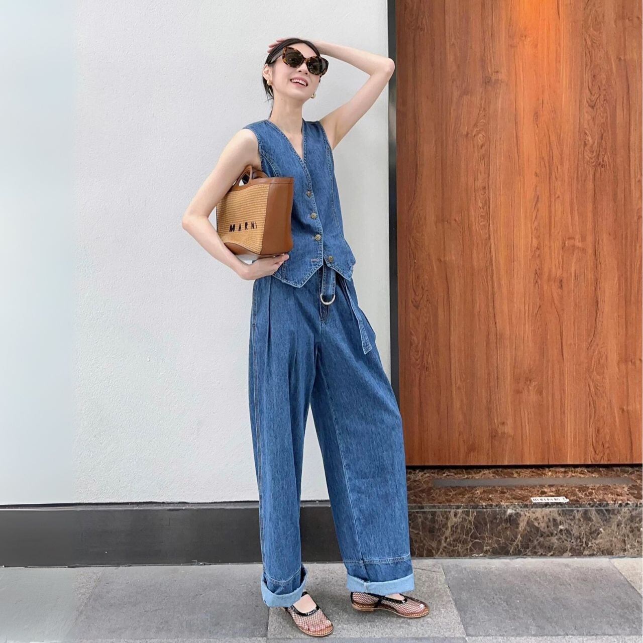大人 シンプルカジュアル デニム ベスト&ワイド set upです♡