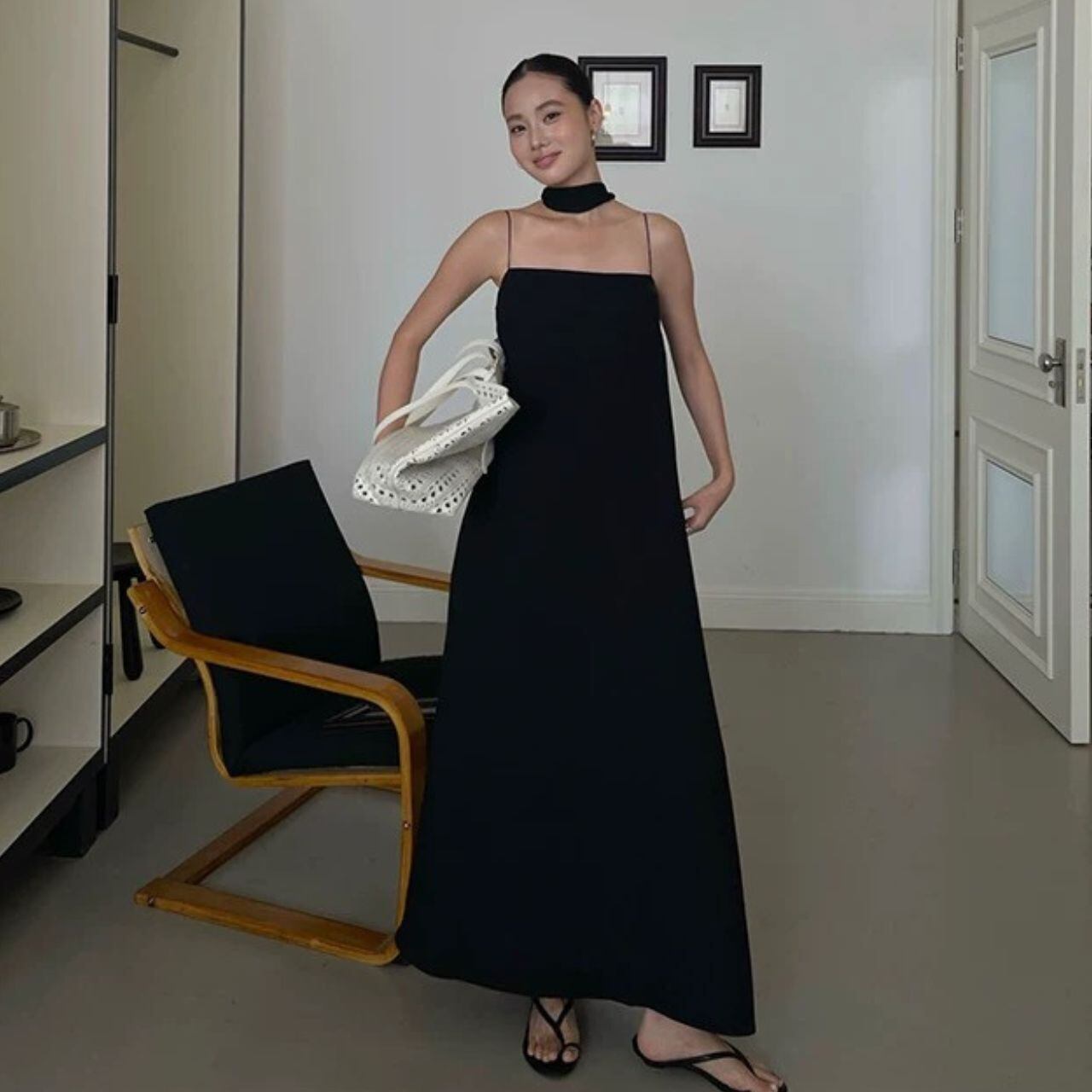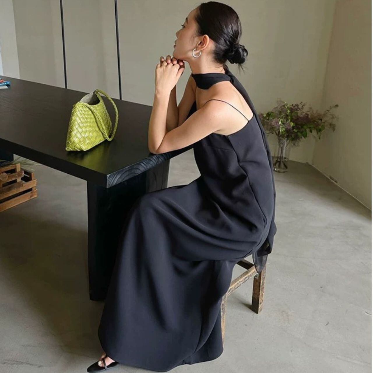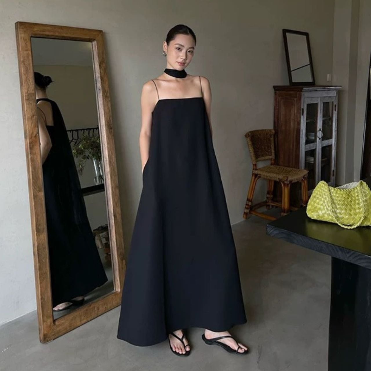 サイドポケット Aライン マキシ丈 ドレス