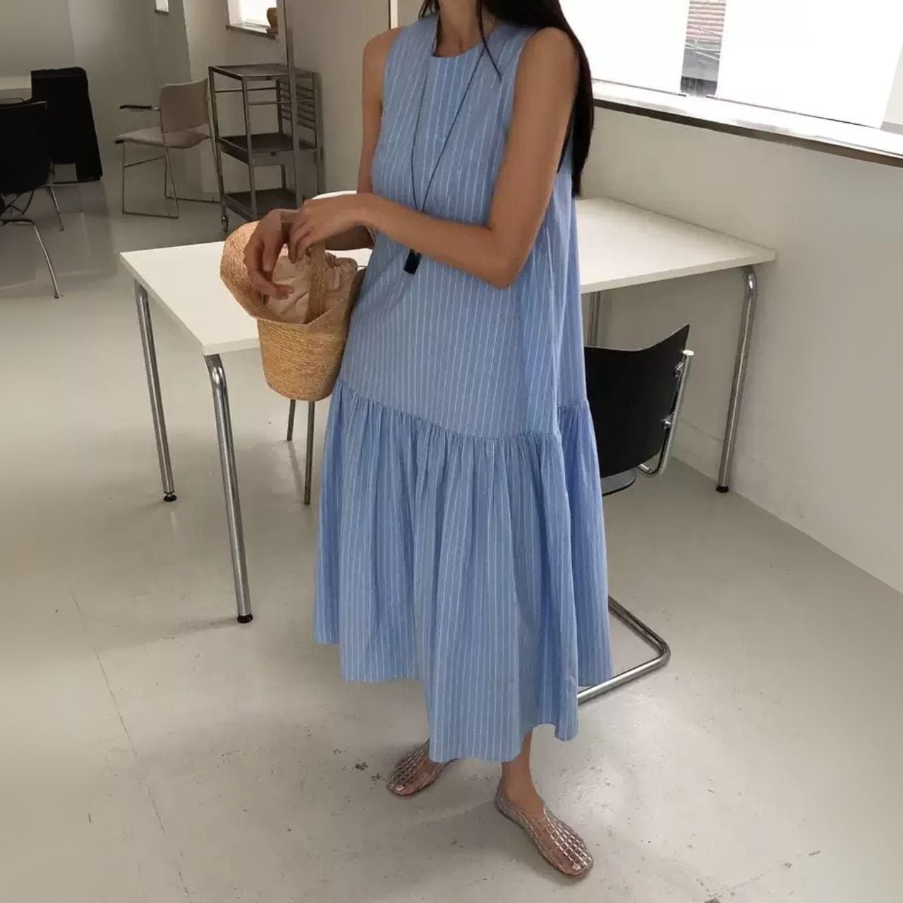 大人 ゆったり ストライプ 切替ギャザー ベストdressです♡
