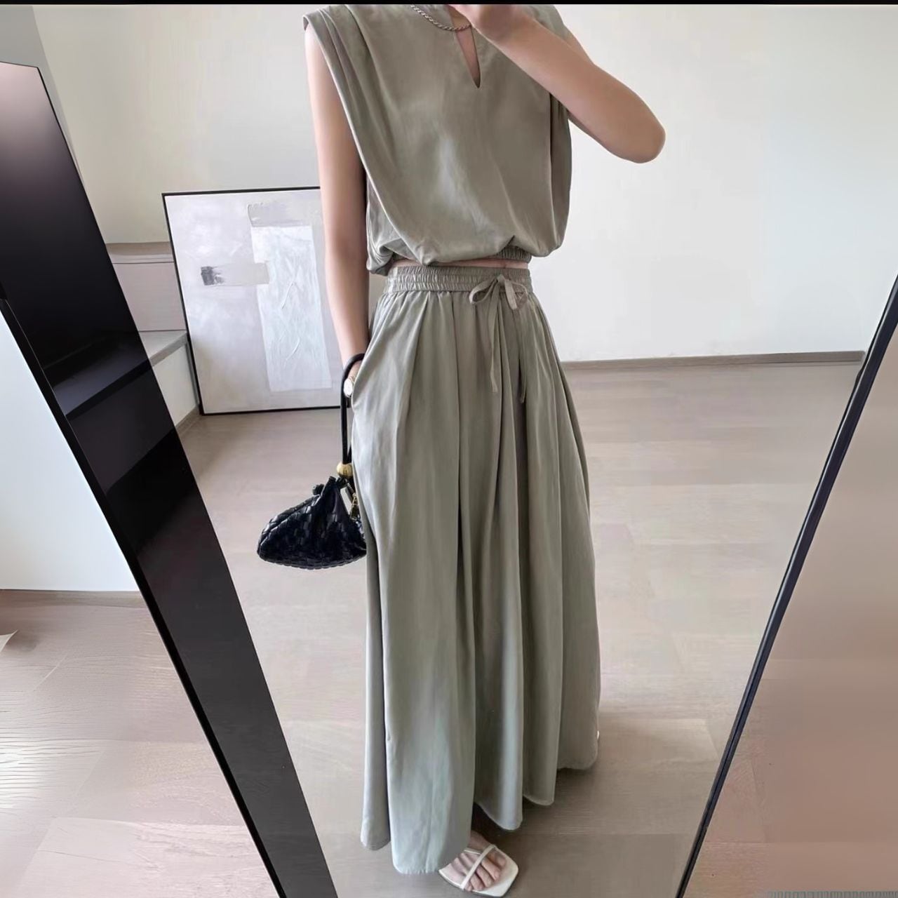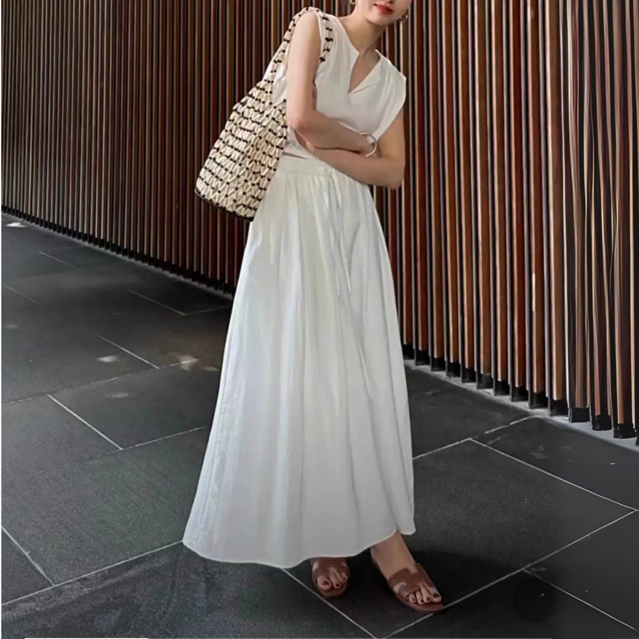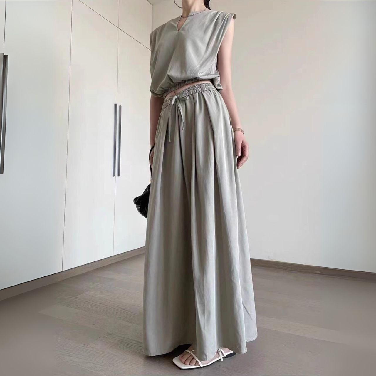 ハイウエスト ウエストドロスト サイドポケット ロングスカート
