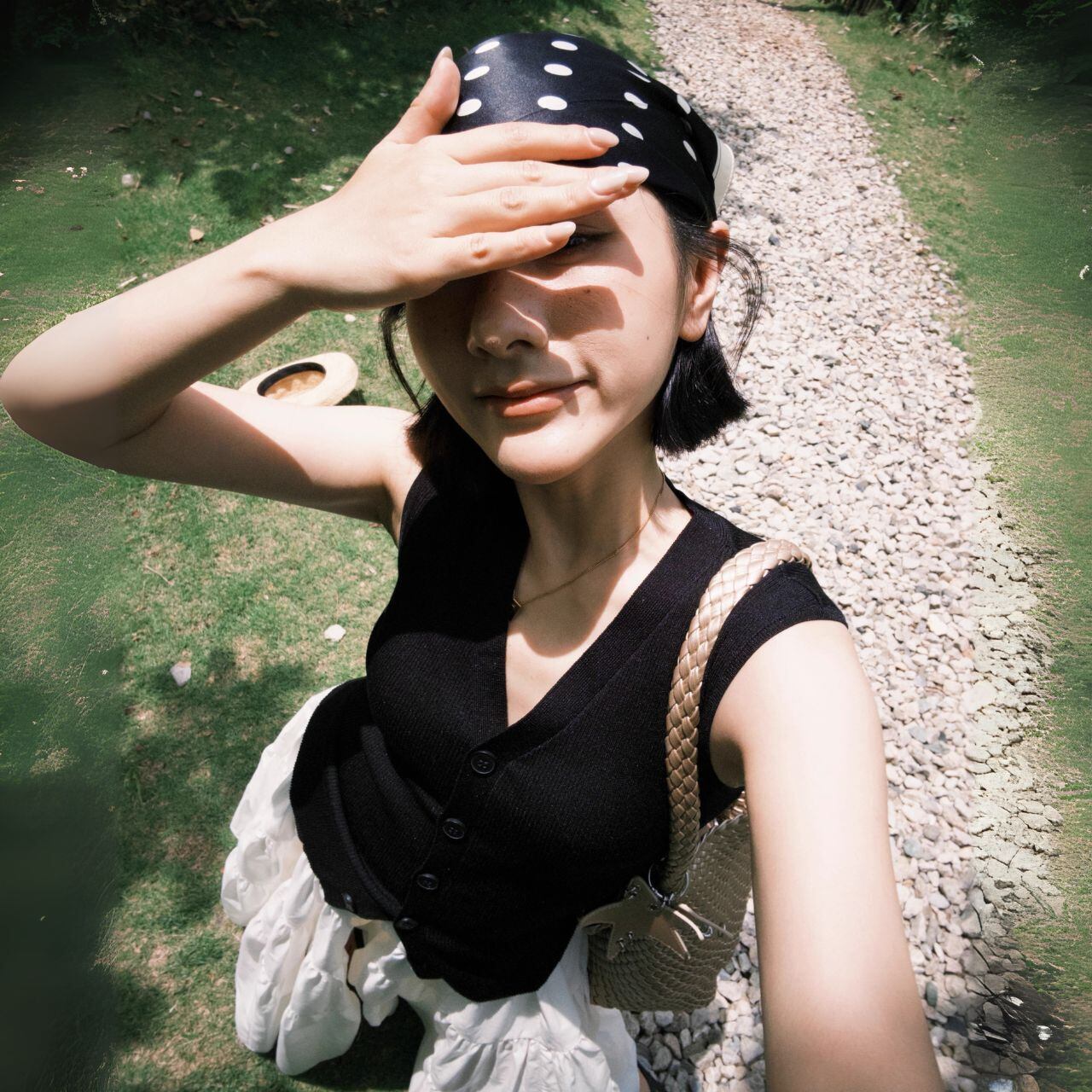 ♡ハイゲージニット Vネック スカーフリボン付 スリミング ニットベスト