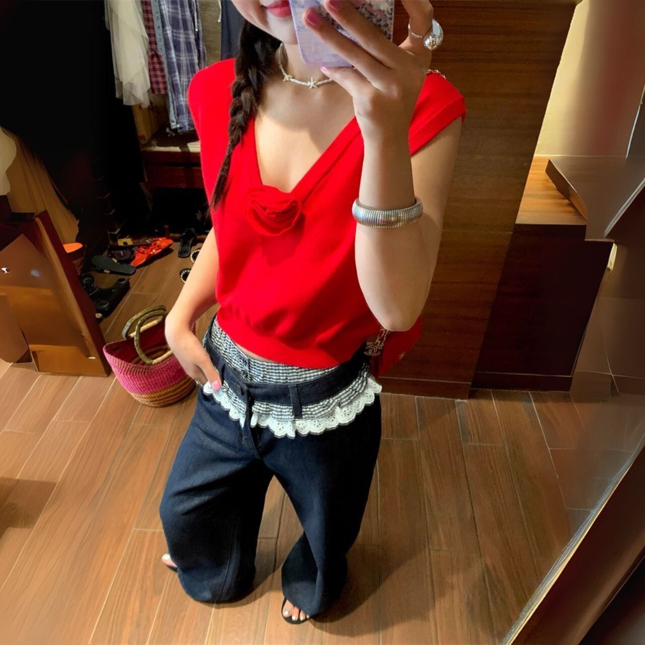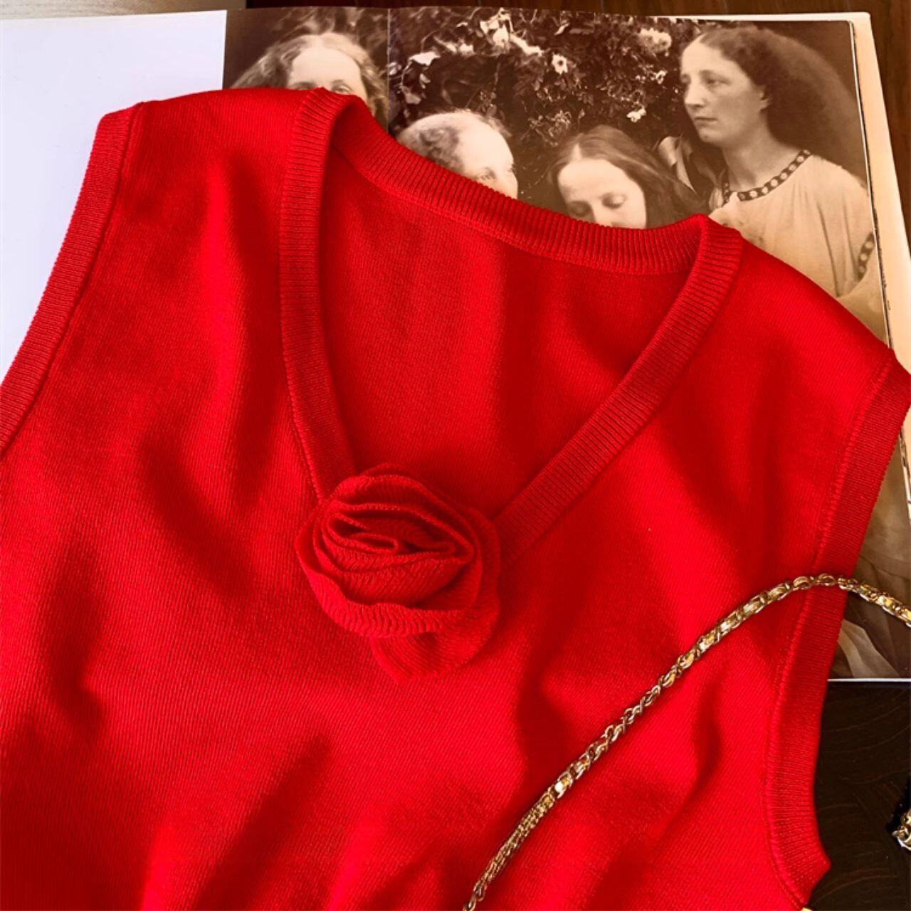 大人 エレガント ローズモチーフ Vネック ニットvestです♡
