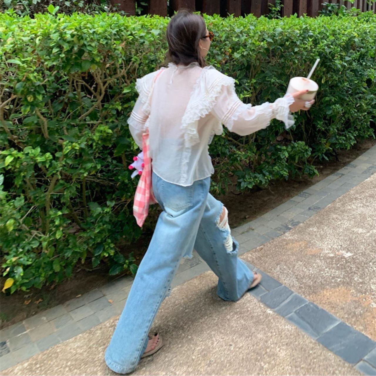 大人 上品&エレガント レース&フリル シフトシアーblouseです♡