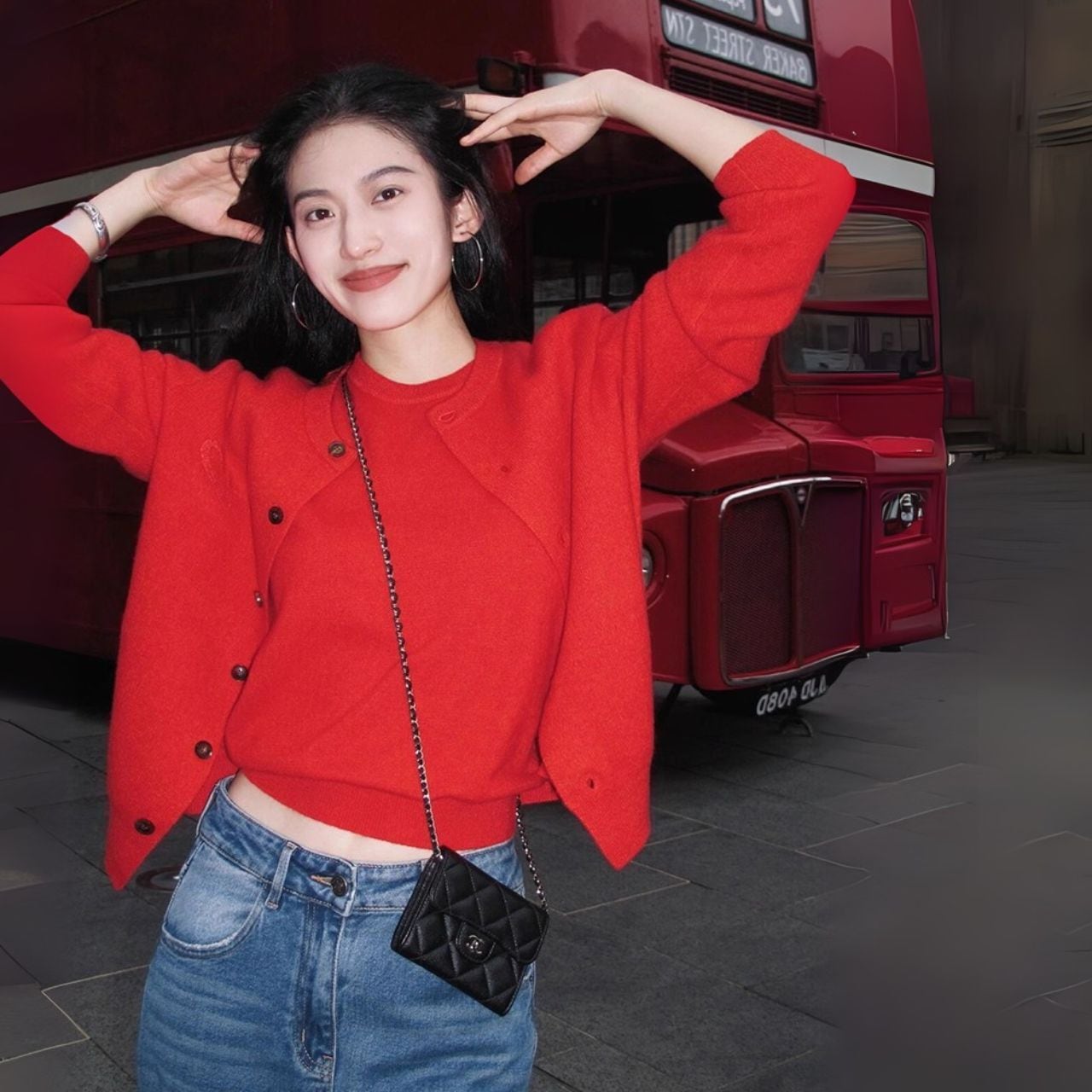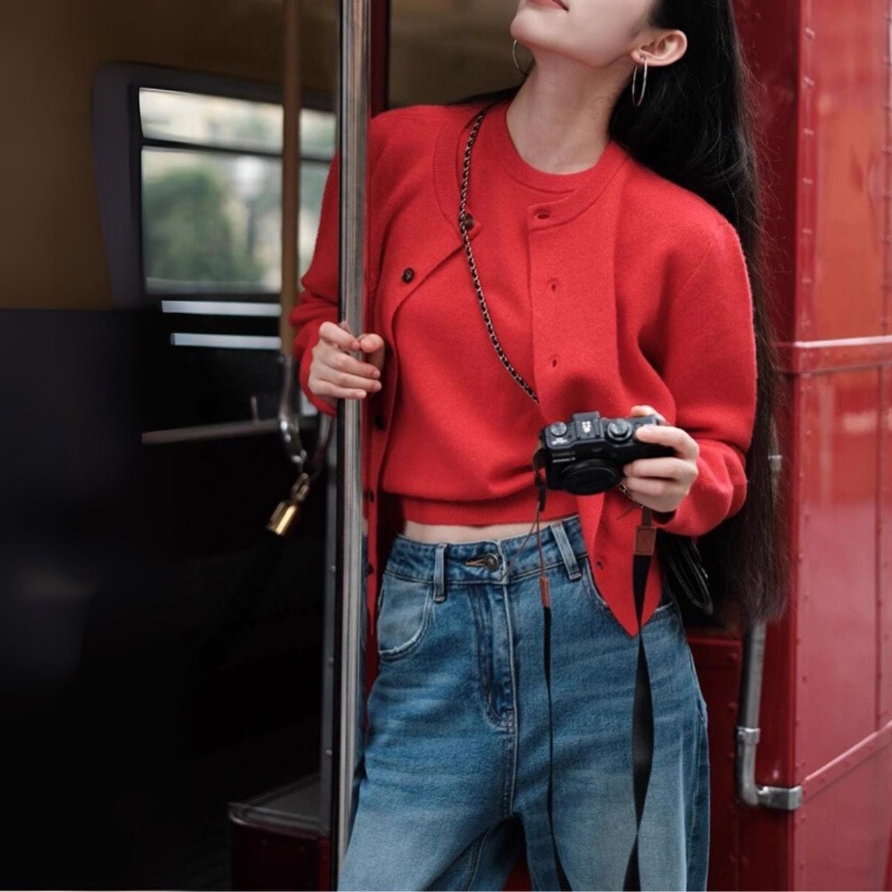 ♡ハイゲージニット ラウンドネック ノースリセーター+カーディガン コンパクトサイズ