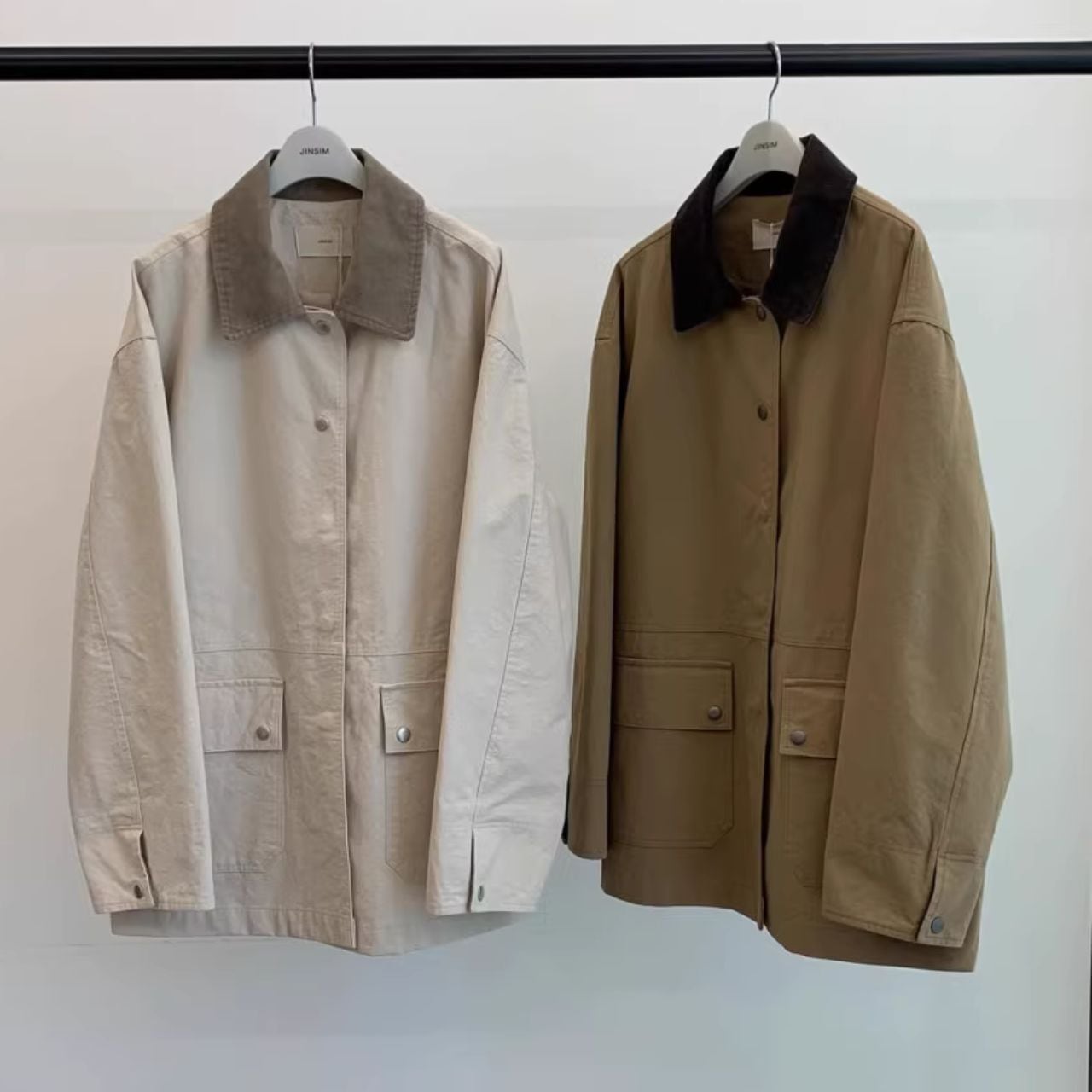 ♡衿&袖口裏 配色 シングルブレスト 大きめポケット ゆったりジャケット
