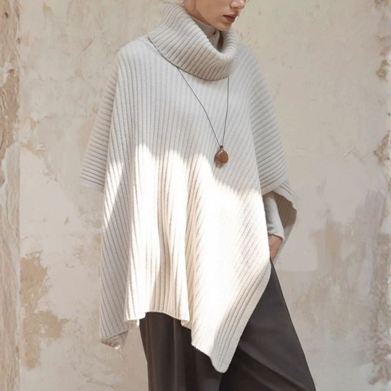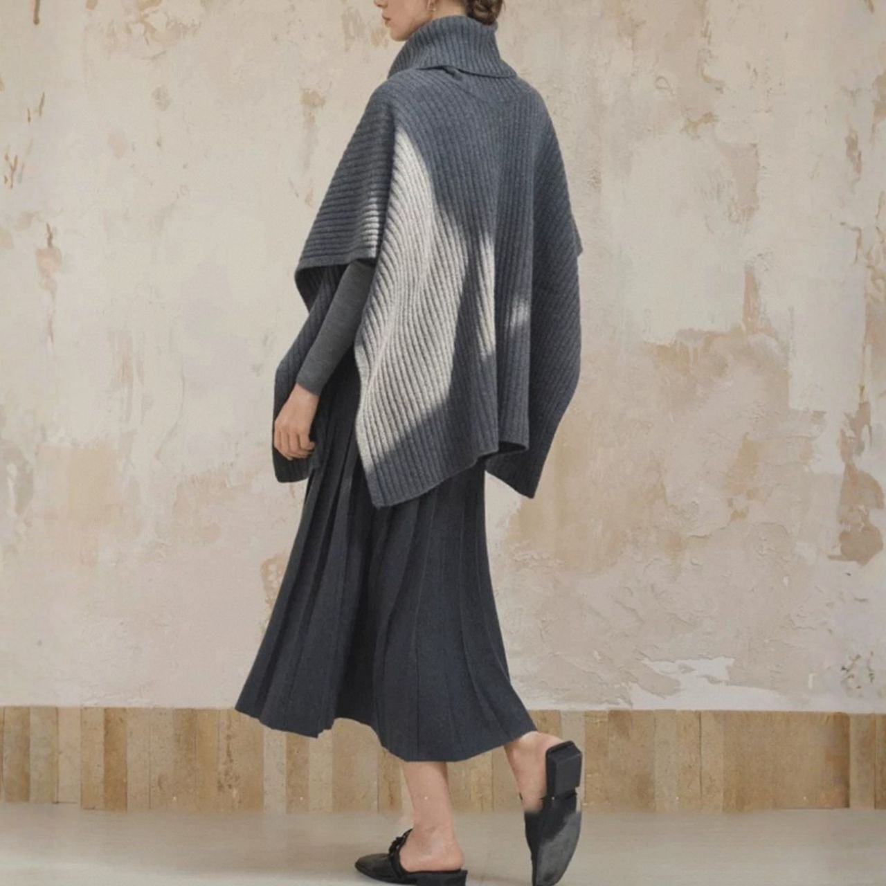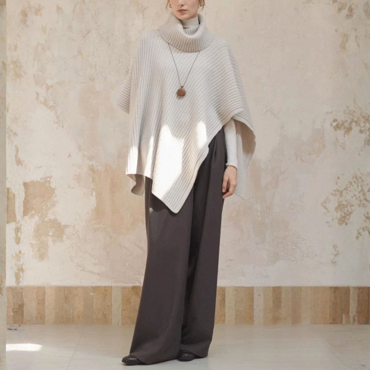 ♡ミドルゲージ(針抜き) タートルネック プルオーバー 厚手 ニットポンチョ