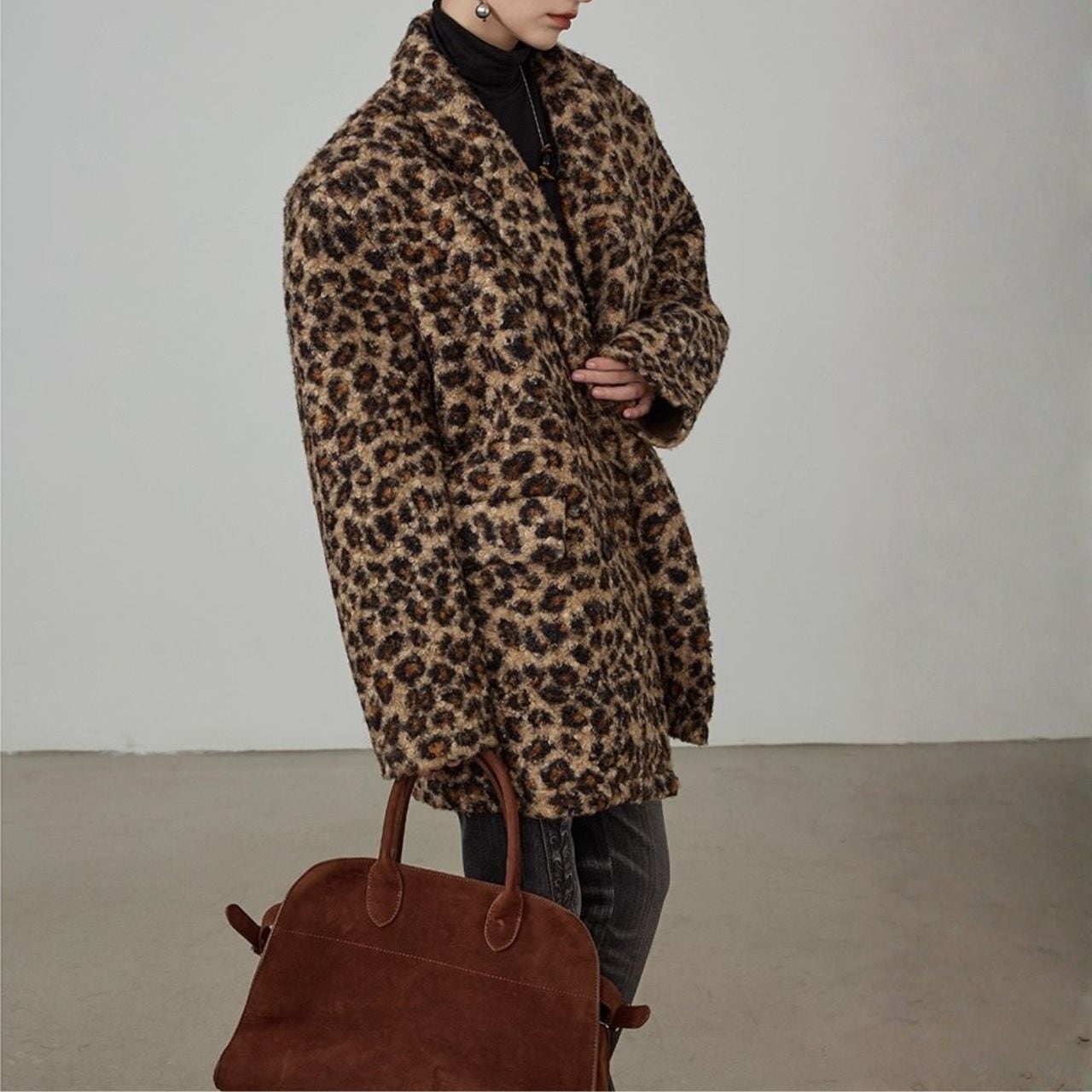 素 材:ボンディグ生地(表)ヒョウ柄:アクリル (裏)スエード:ポリエステル