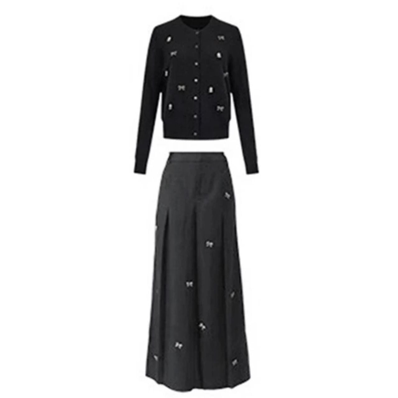 大人 可愛い リボン刺繍 カーで&ワイドパンツset upです♡
