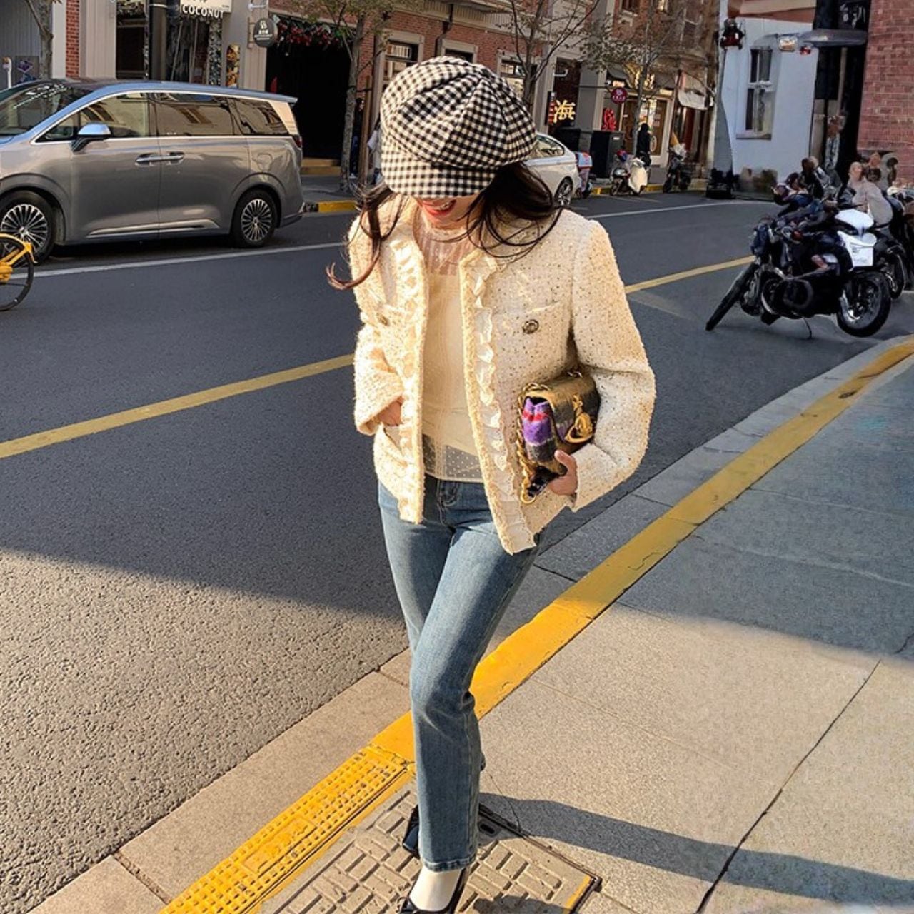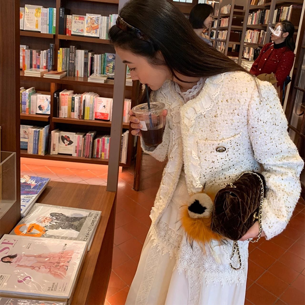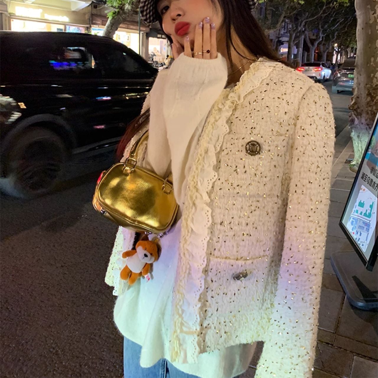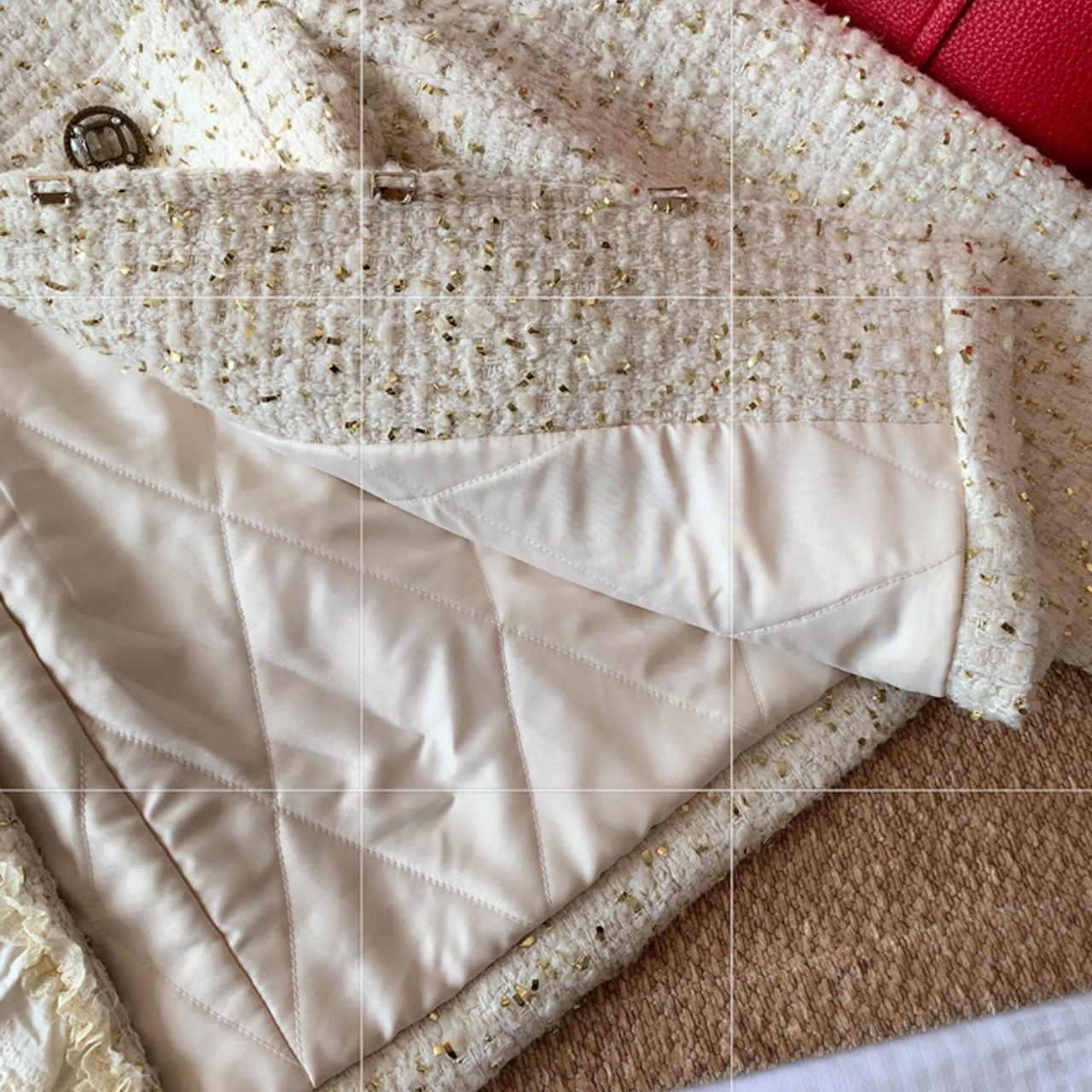 ♡ホワイトに上品なゴールドラメ入 ウール混ツイード生地 暖かい裏地キルト仕様