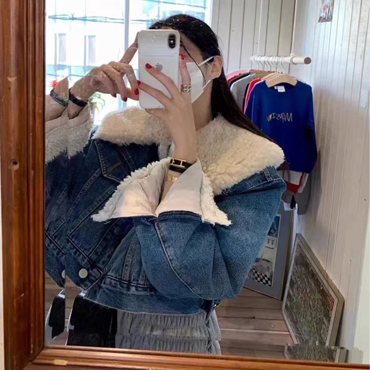 ♡可愛い 大き目ボア衿 ショート丈 裏ボア仕様 デニムジャケット