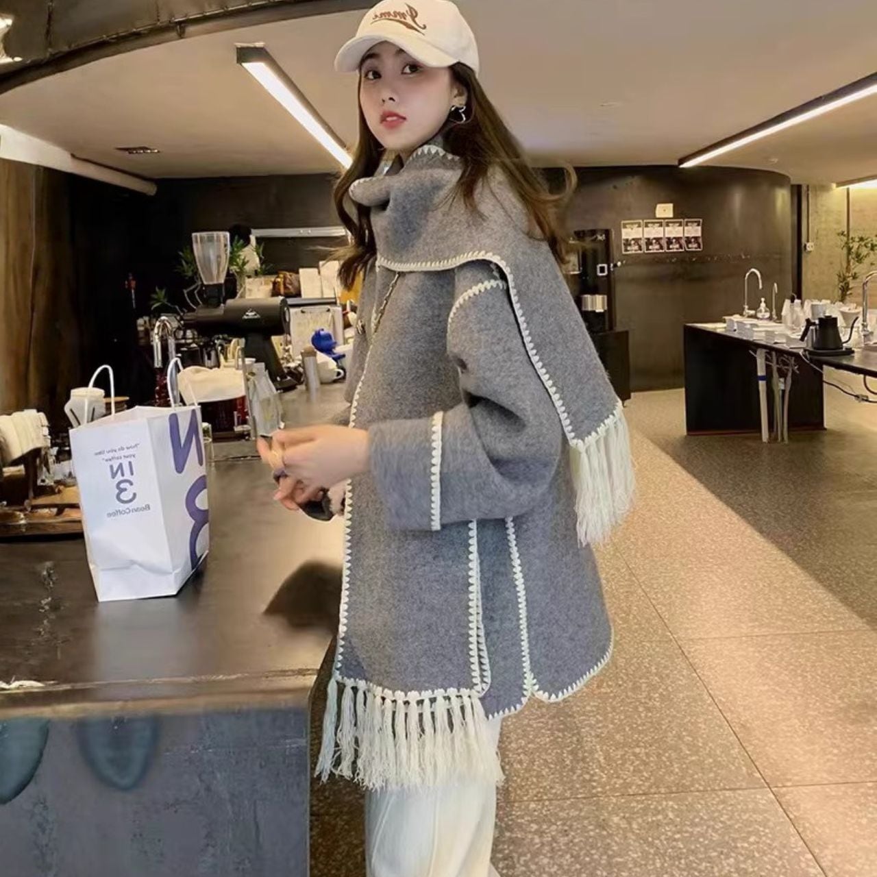 4ボタン サイドポケット シュール ニットフリンジ コート