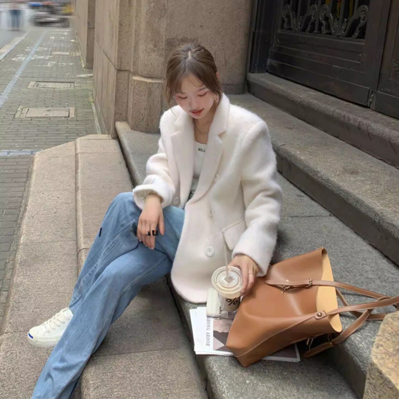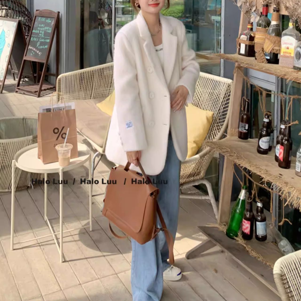 ♡厚手ウール混 肩パット入 ゆったり Wブレスト テーラーコート