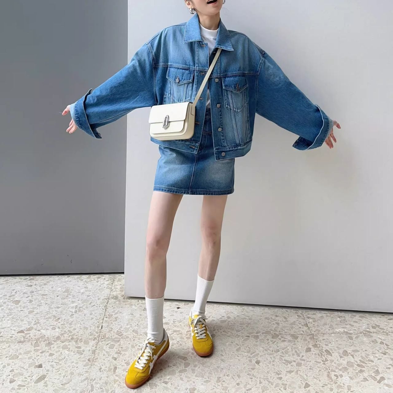 ♡ウォッシュドデニム ゆったりGジャン&ハイウエ ミニスカート セット