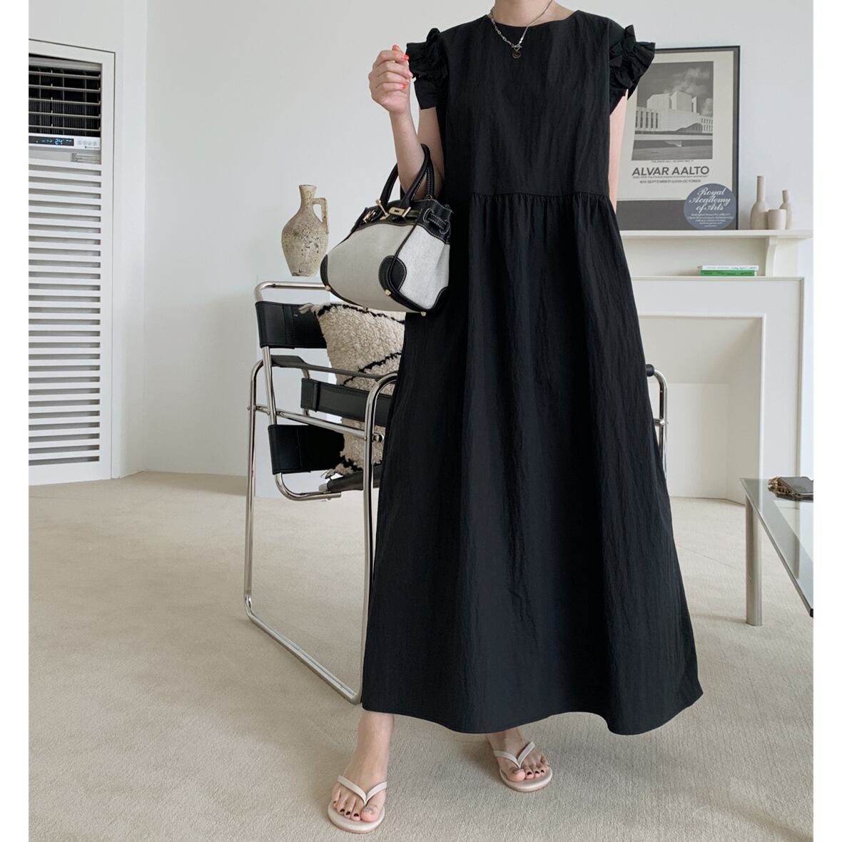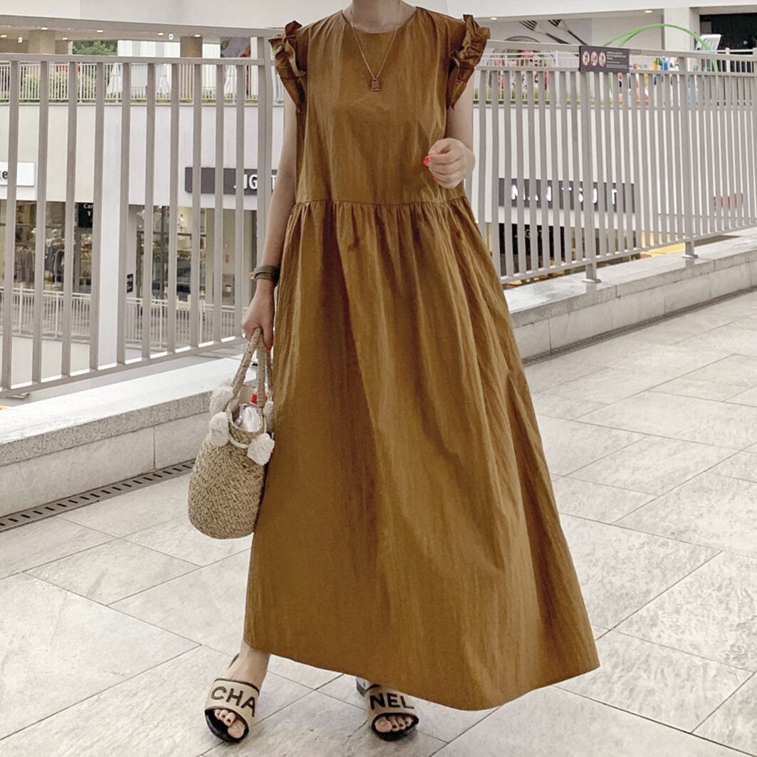 ♡ラウンドネック バック1つボタン 袖フリル ルーズシルエット