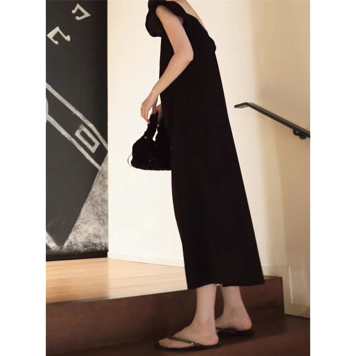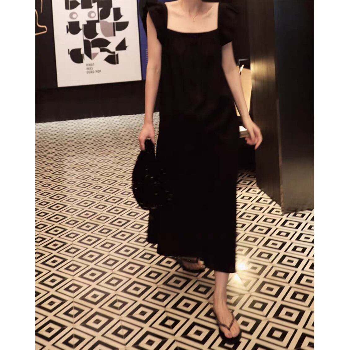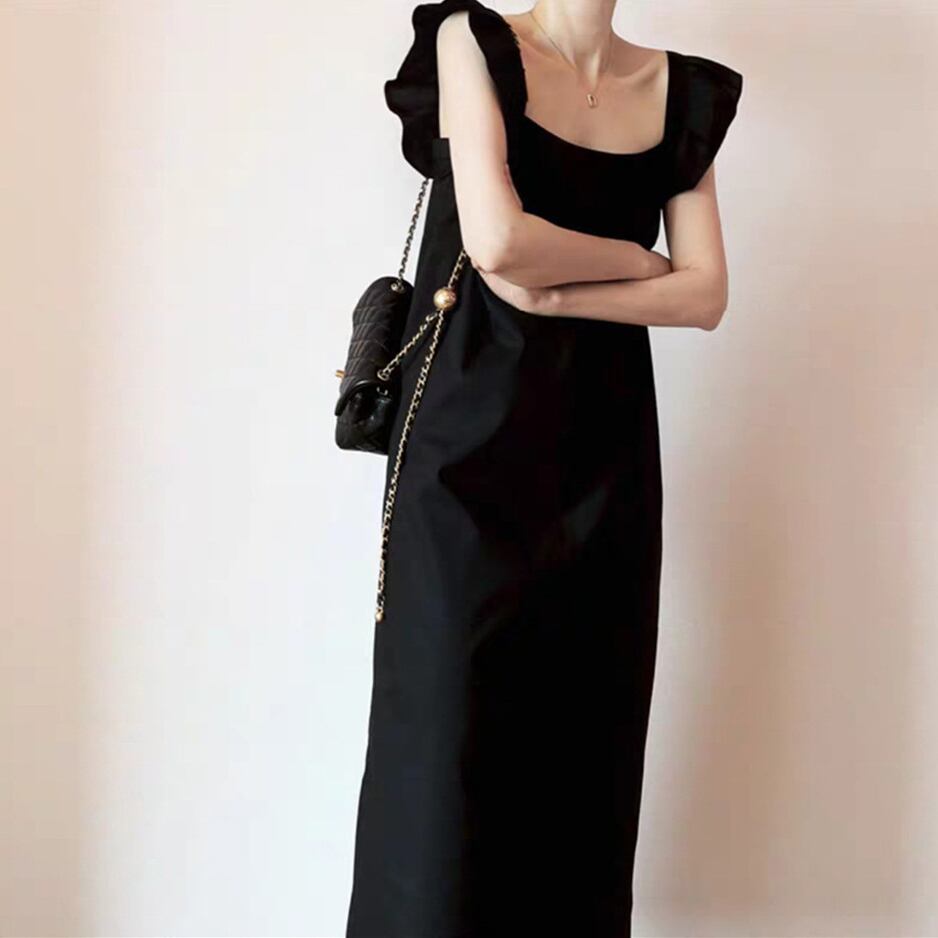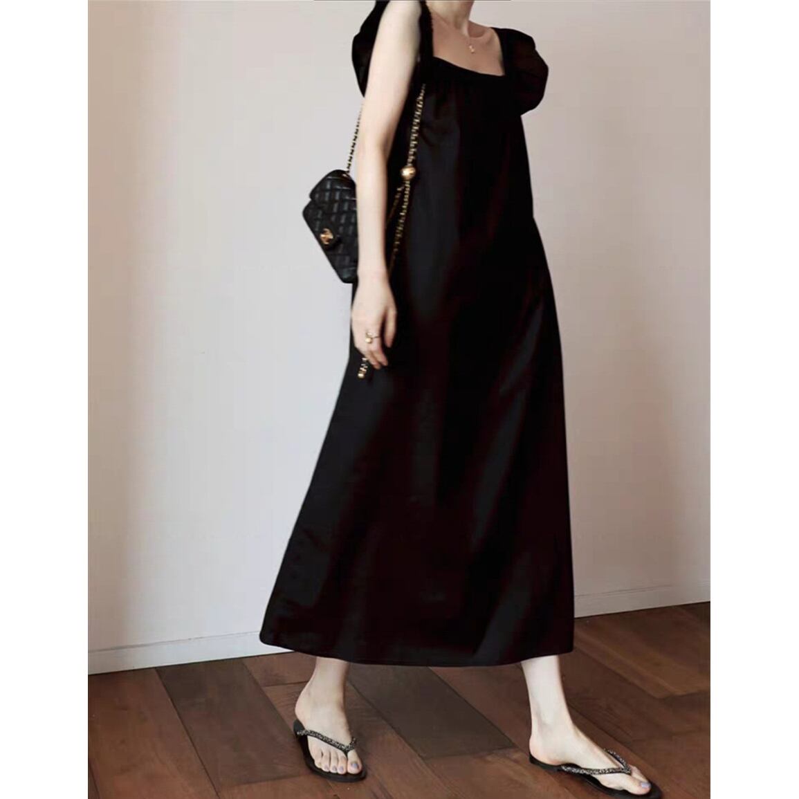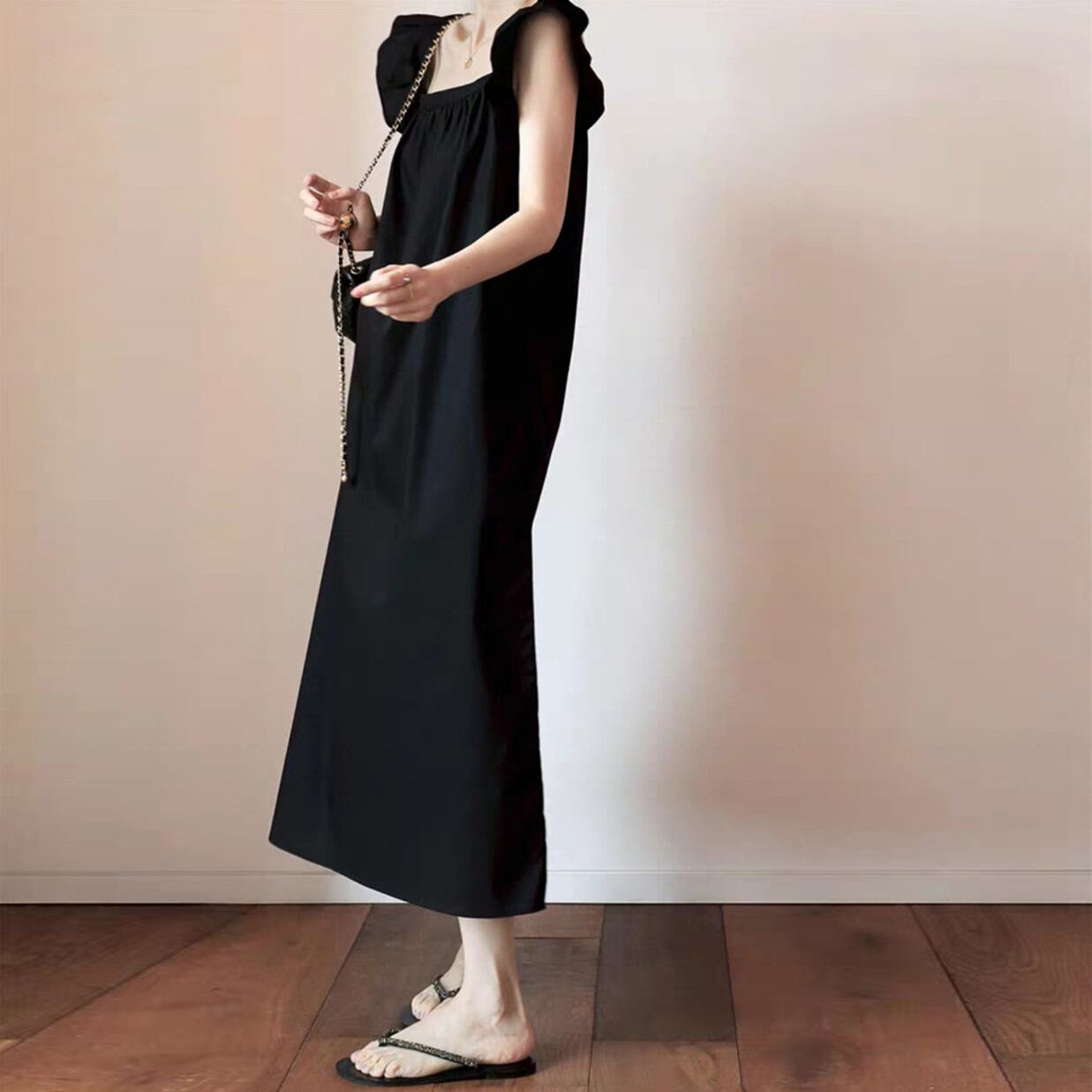 ♡上品スクエアーネック 腕細見え 肩フリル ロング丈
