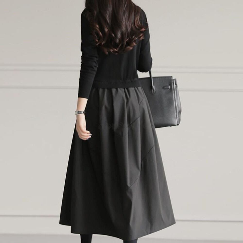 ♡1枚でおしゃれ ラウンドネック セーターXフレアースカート