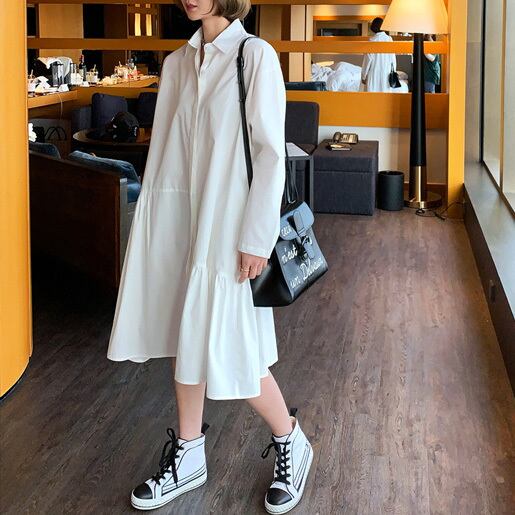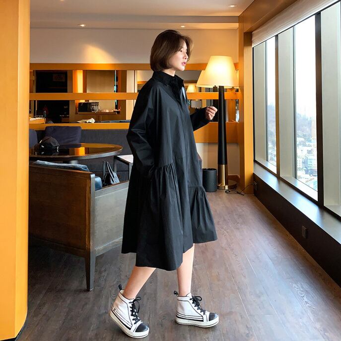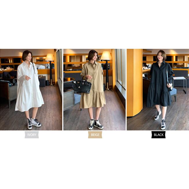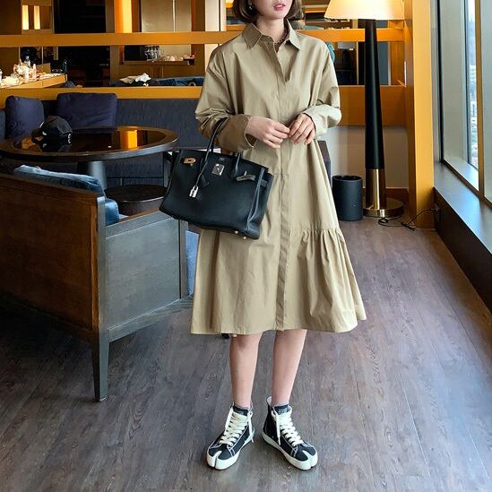 ♡イレギュラー切替 ギャザー 上品ひざ丈 比翼あき ゆったり
