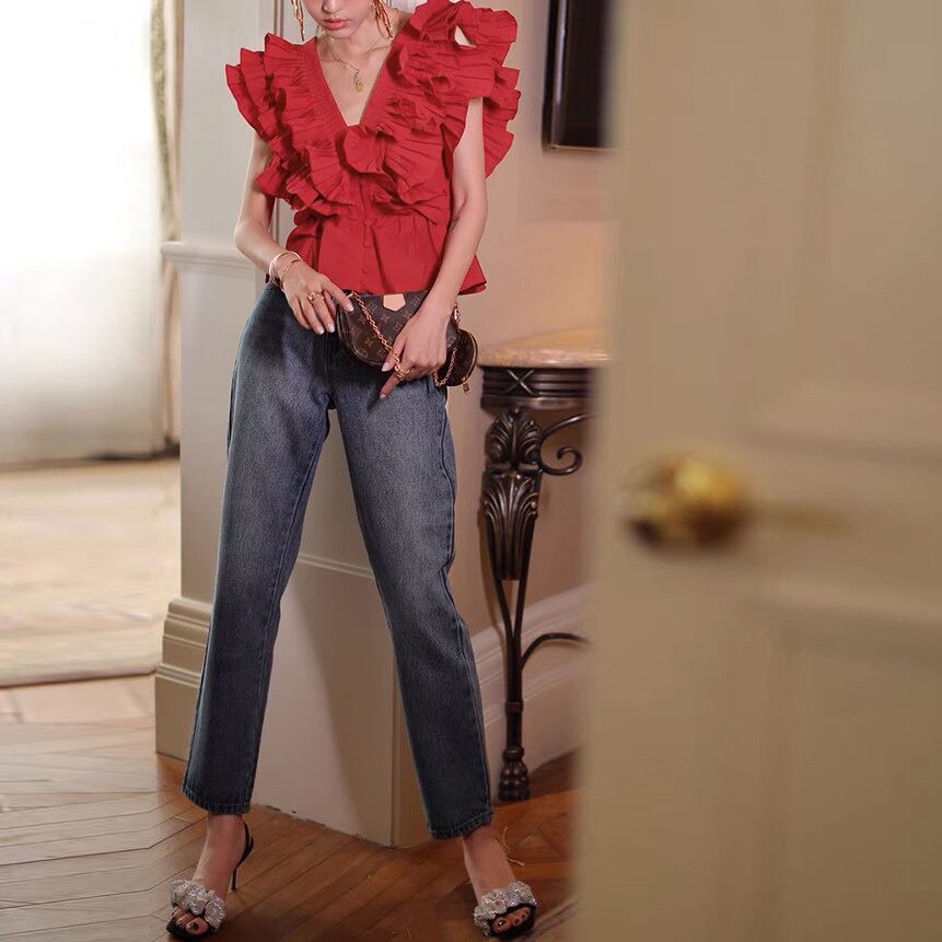 ♡前後Vネック プリーツフリル