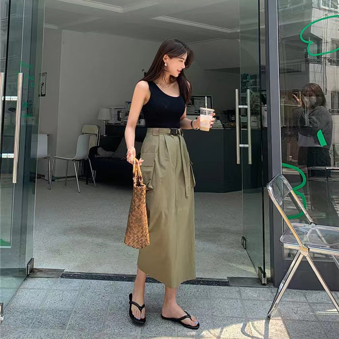 今期注目 履くだけで オシャレ 大人 カーゴskirtです♡