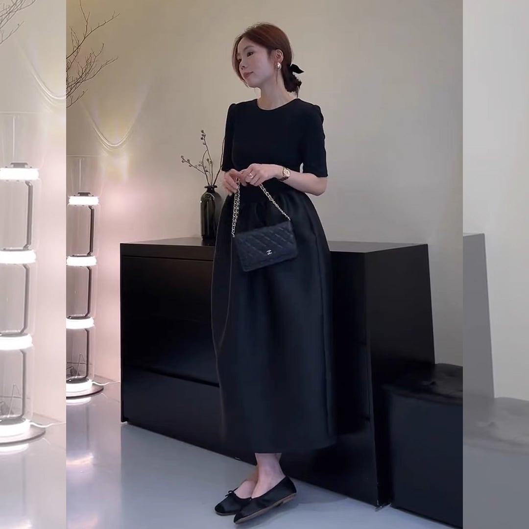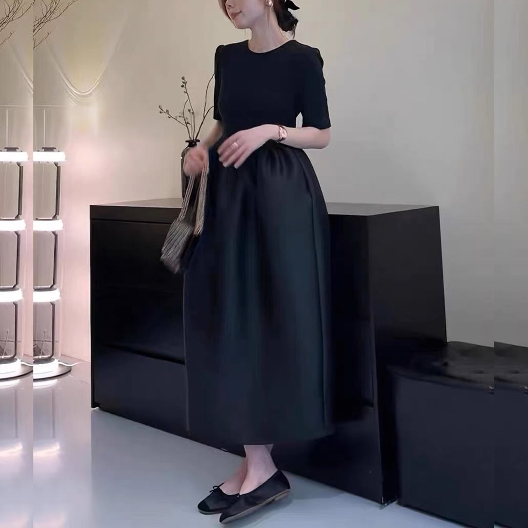 ♡ラウンドネック 半袖 切替ギャザー 上半身スリム ドッキング