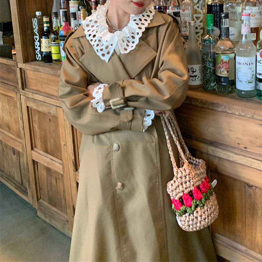 ♡コットン100% 衿Wフリルレース 前Wレース 袖フリルレース