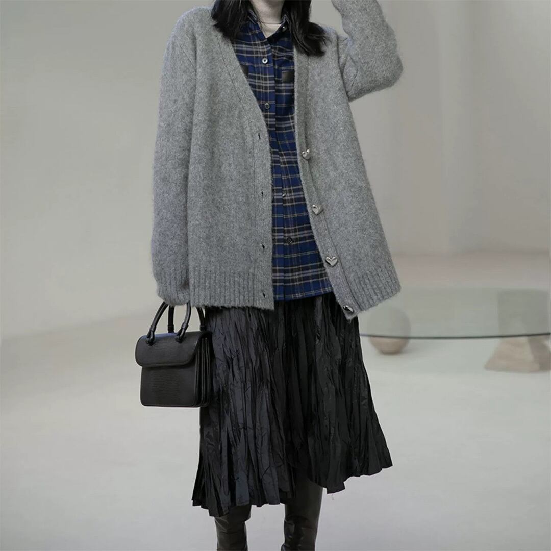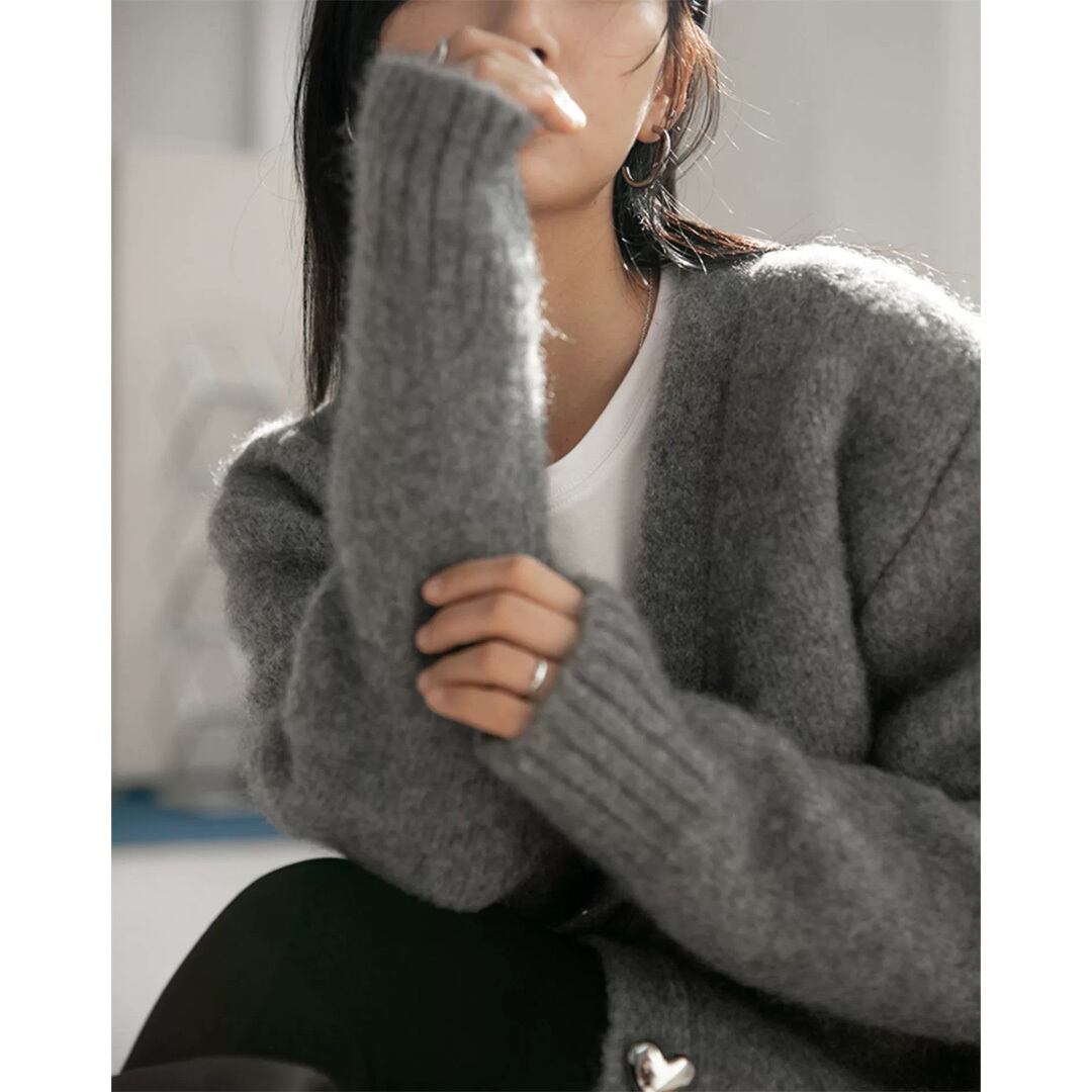 ♡ミドルゲージ モヘア ゆったりドロップショルダー ハートボタン
