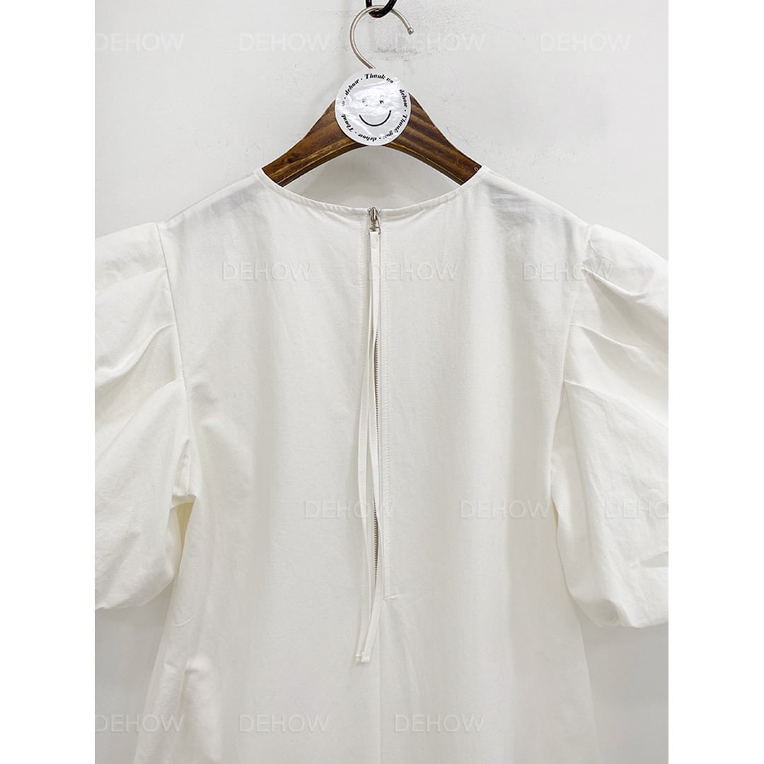 ♡ラウンドネック バルーンスリーブ バックロープジッパー バックベンツあき サイドポケット