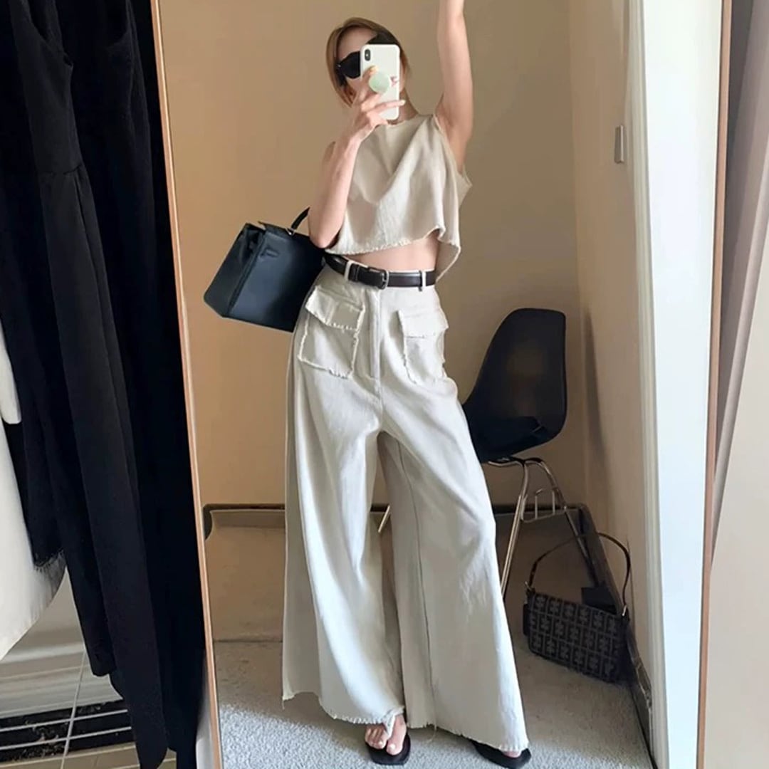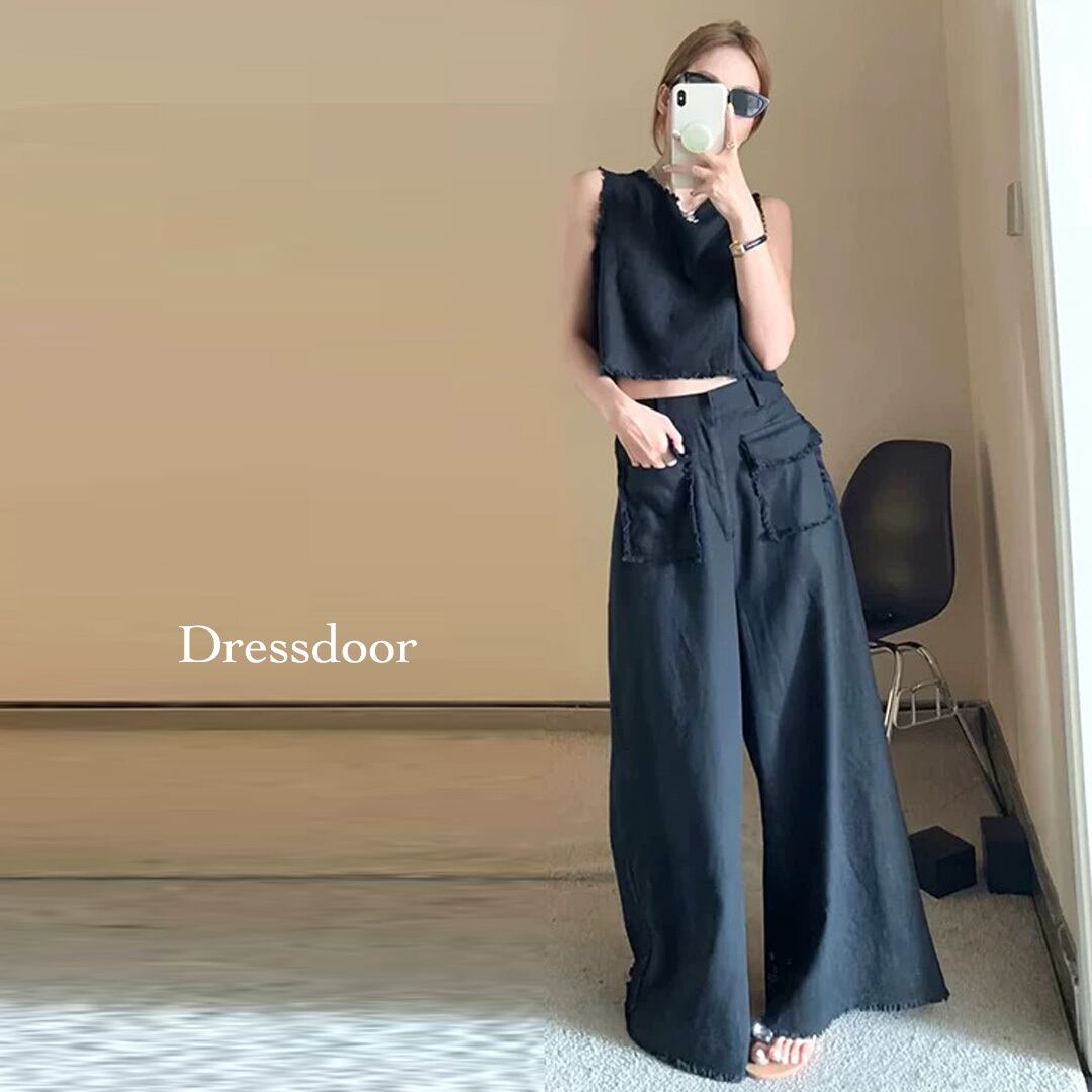 大人シンプル フリンジ ノースリ+ワイトパンツ set upです♡