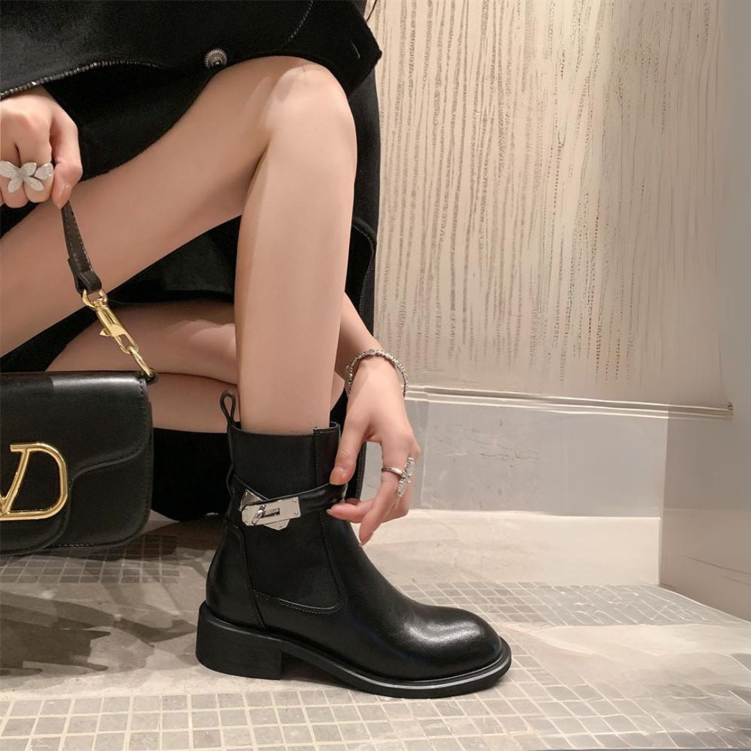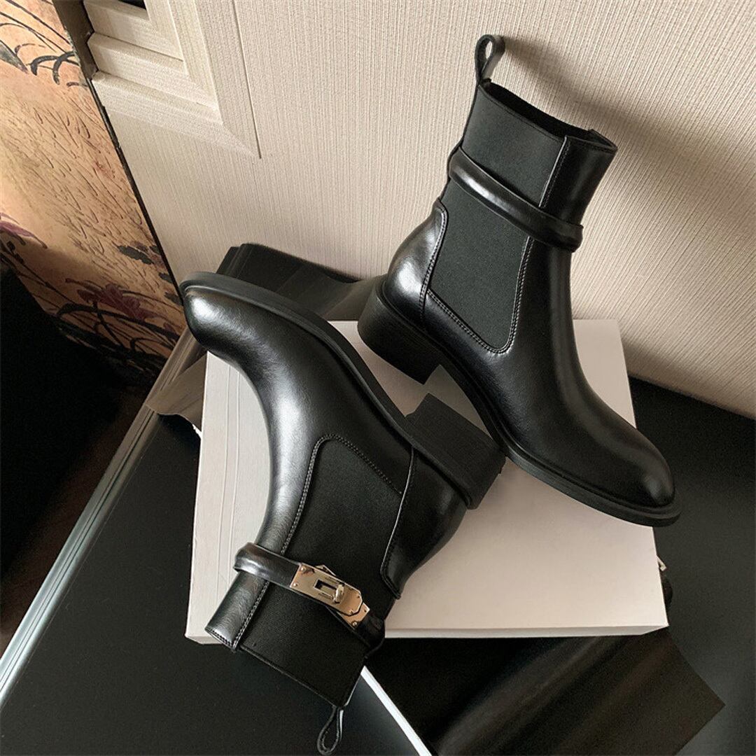 ♡牛革 ラウンドツゥ シルバーバックルベルト(取外し可能) サイドゴア