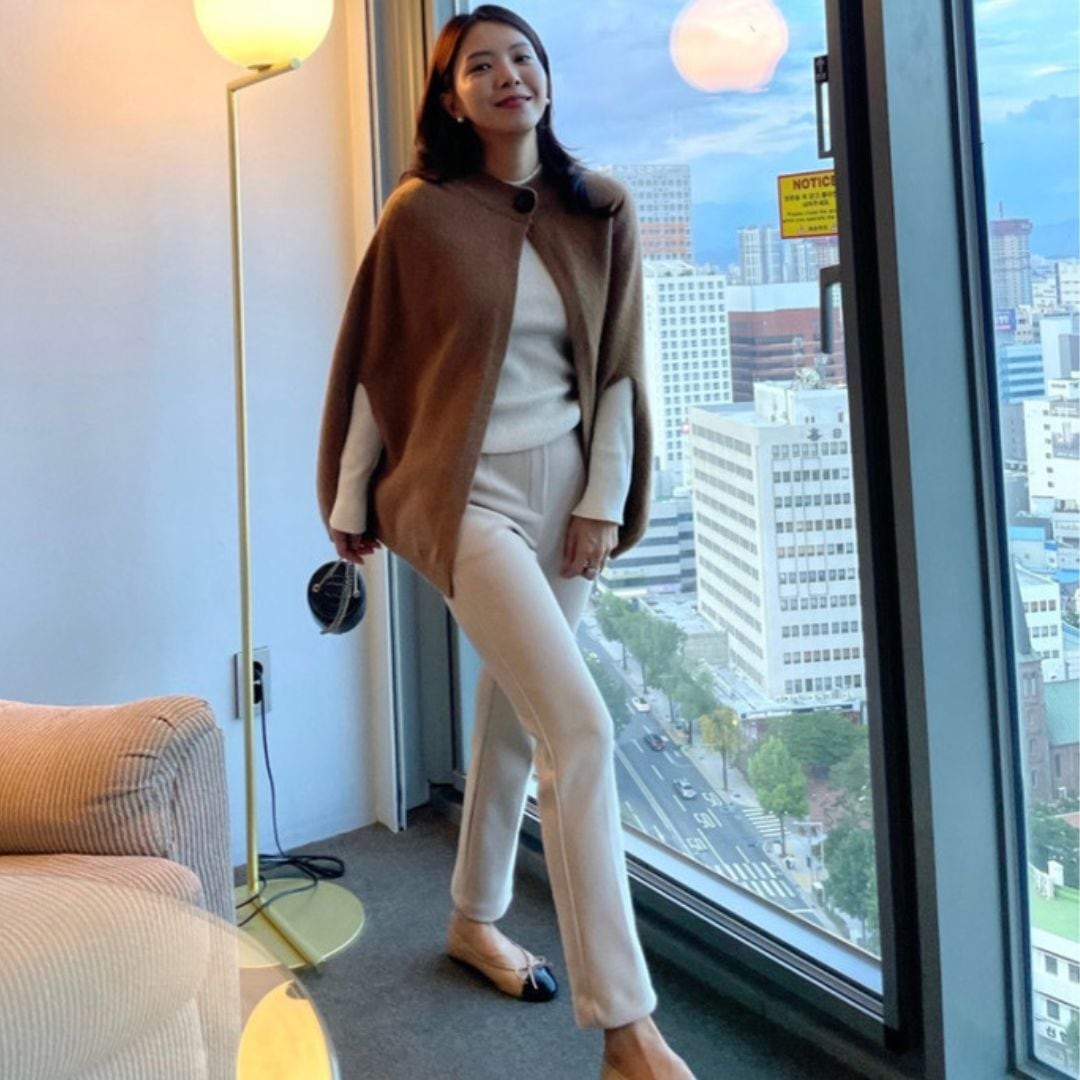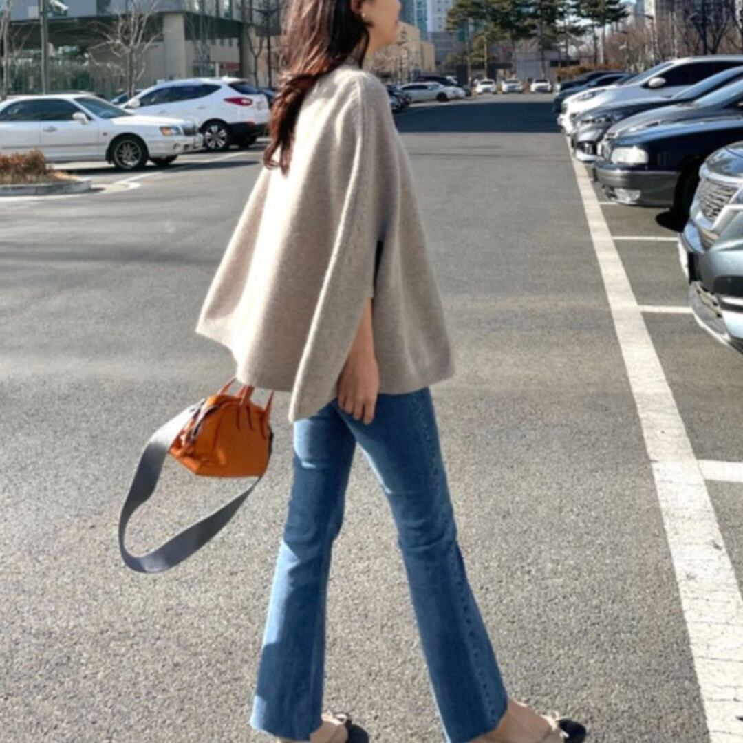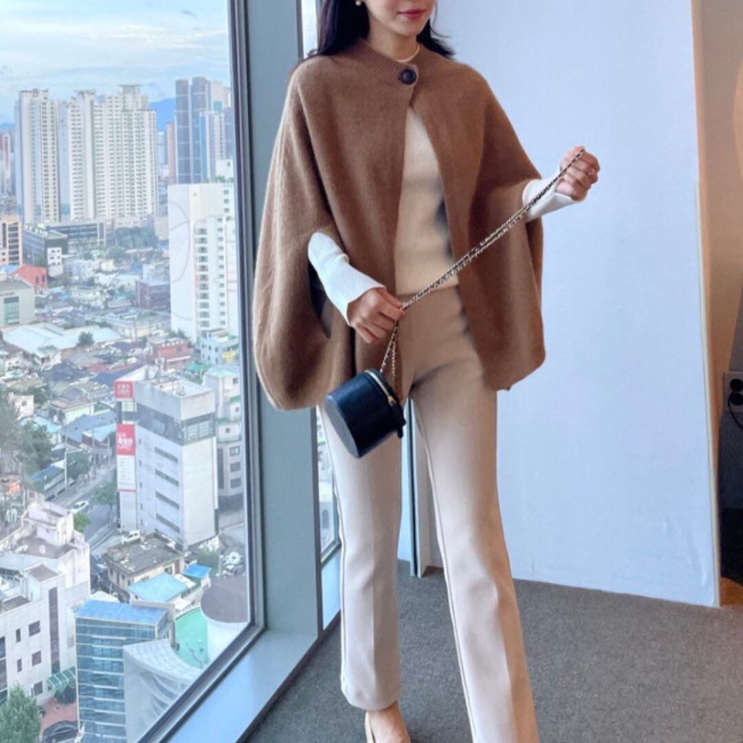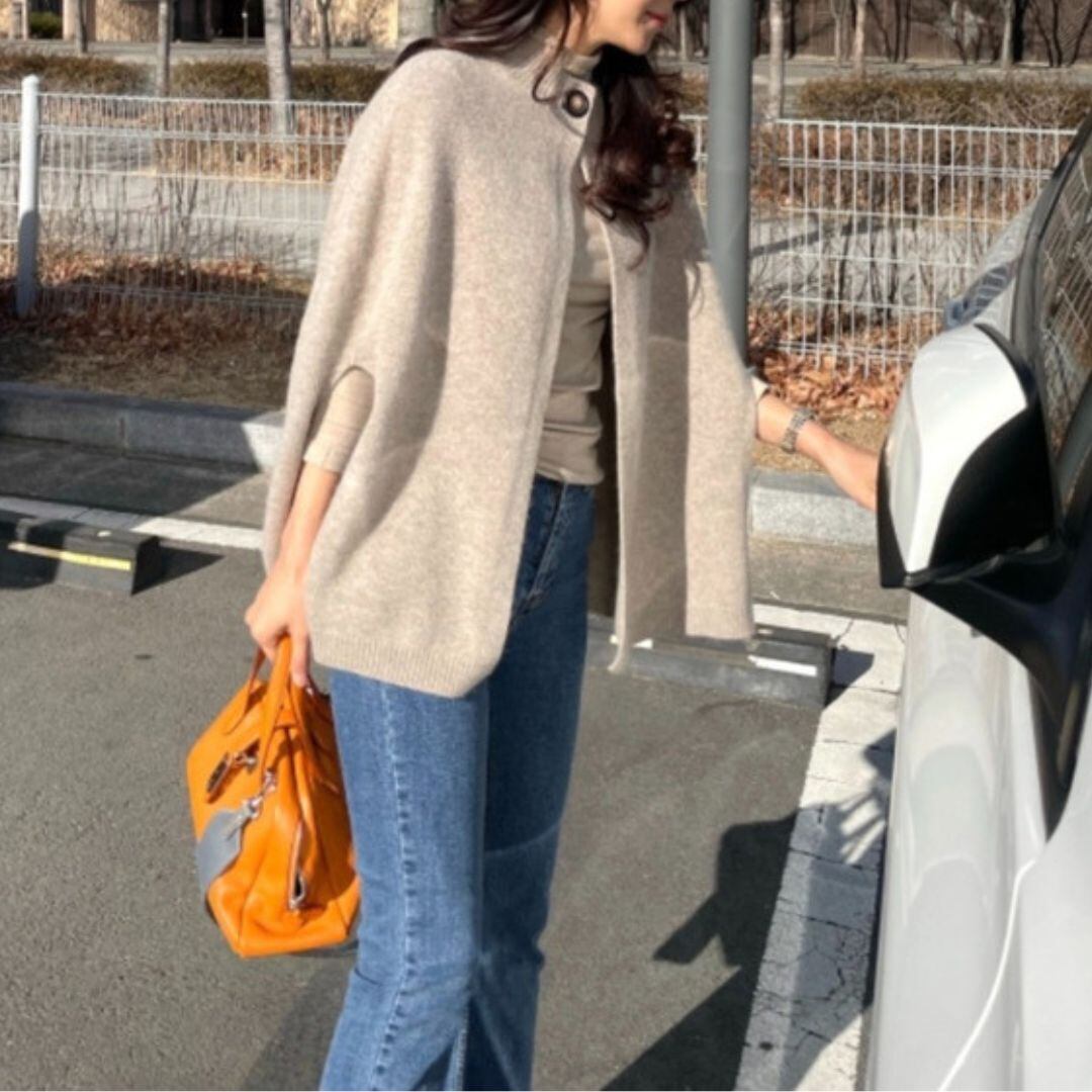 ♡ハイゲージ ニット ハイネック 1つボタン ケープ