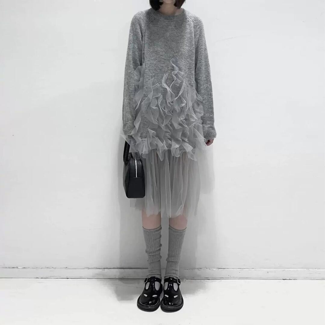 大人 カジュアル チュールフリル ニットdressです♡