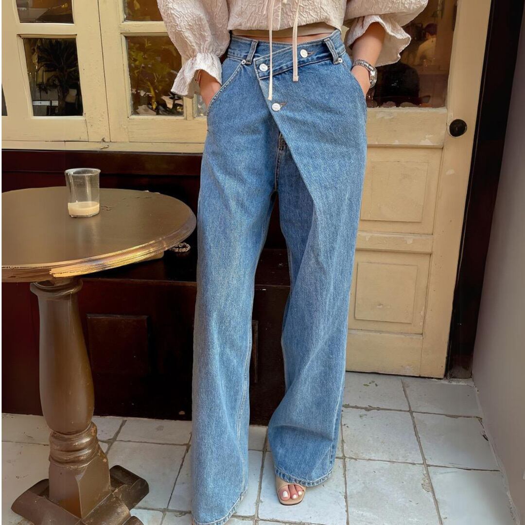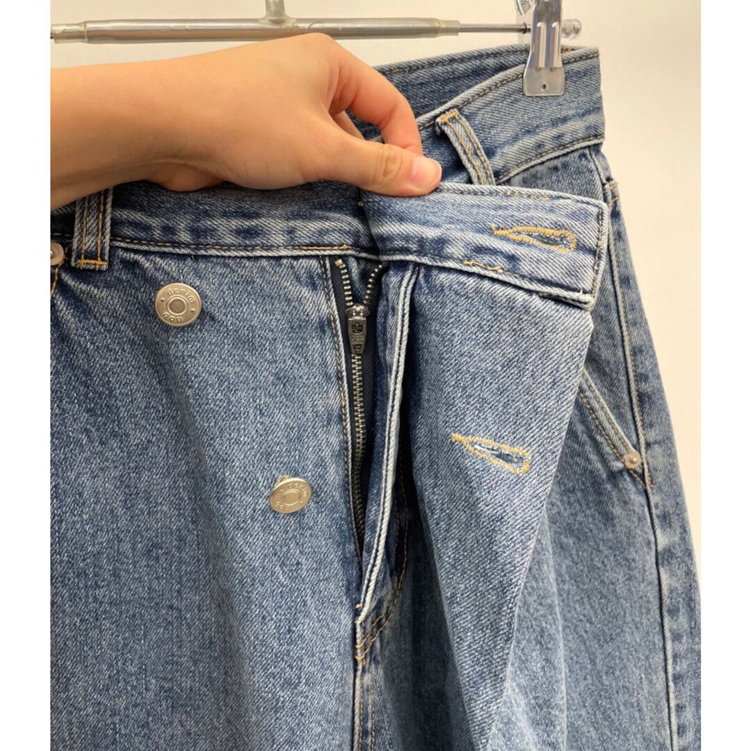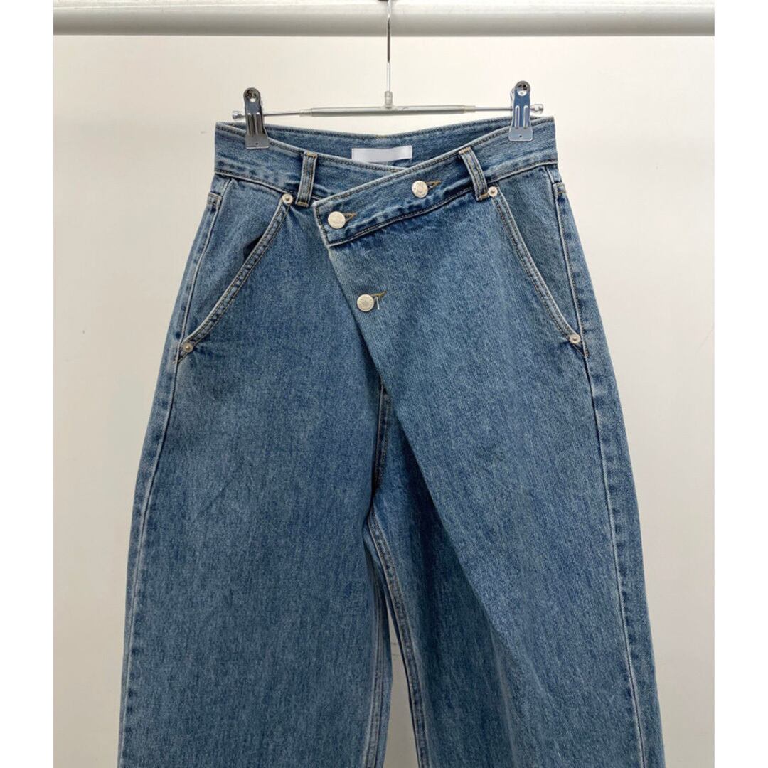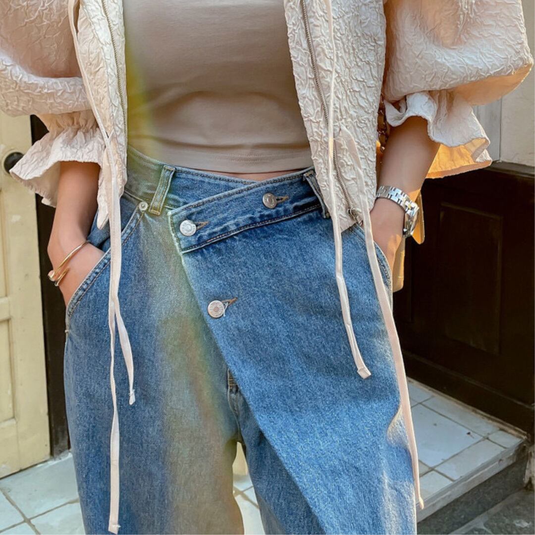 ♡ハイウエスト イレギュラーボタン(巻き風) ゆったり ワイドストレート