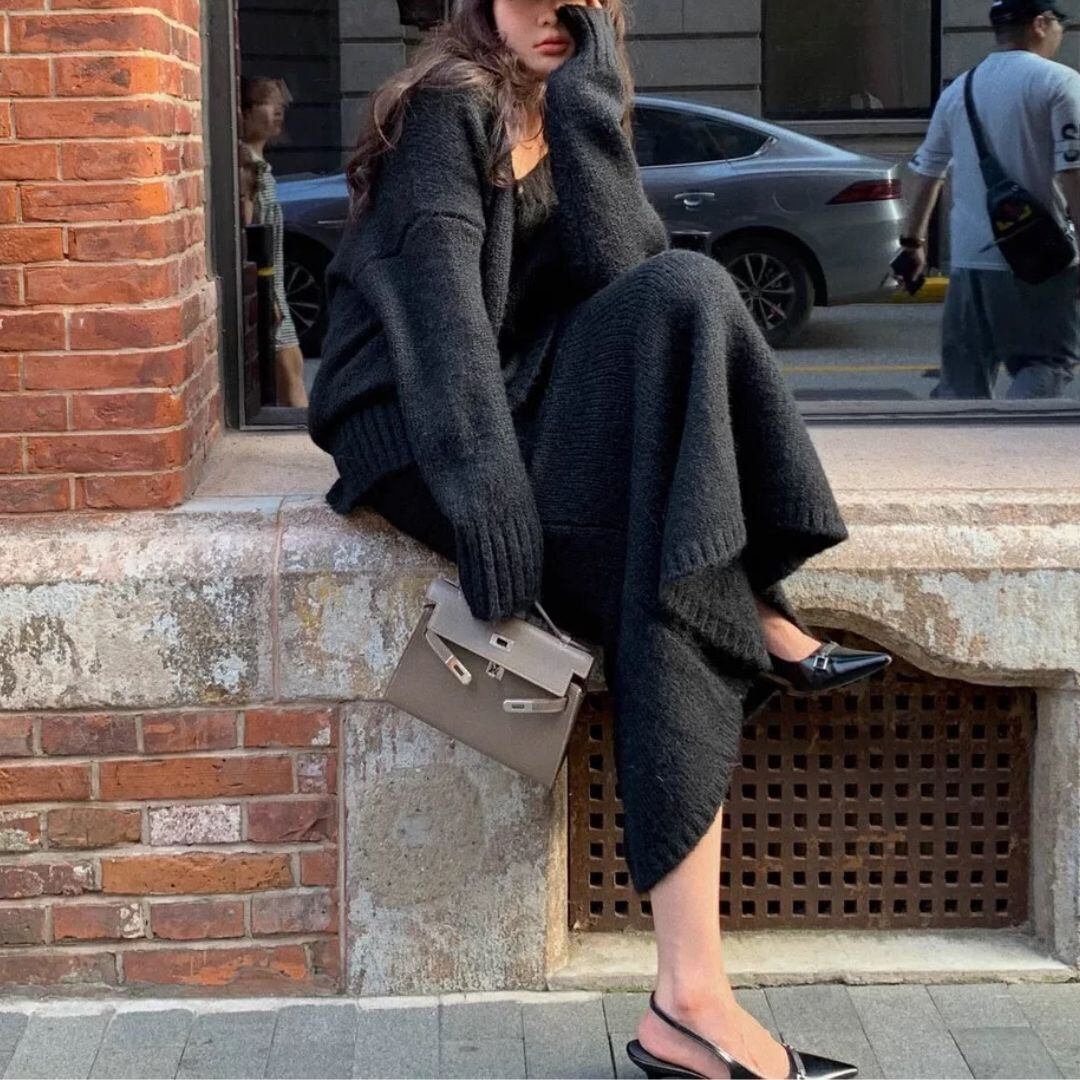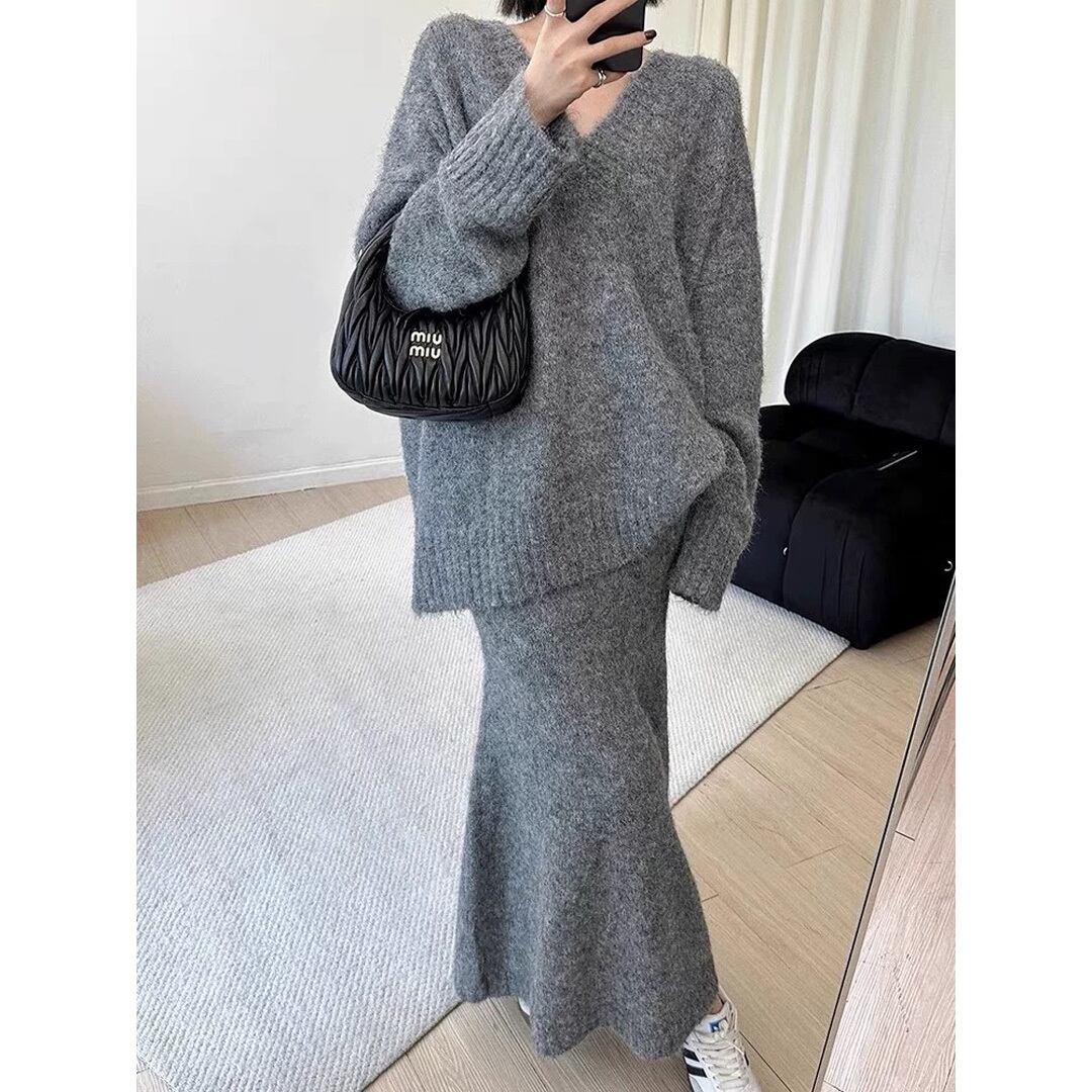 ♡ミドルゲージ Vネック ドロップショルダー オーバーサイズニット+
