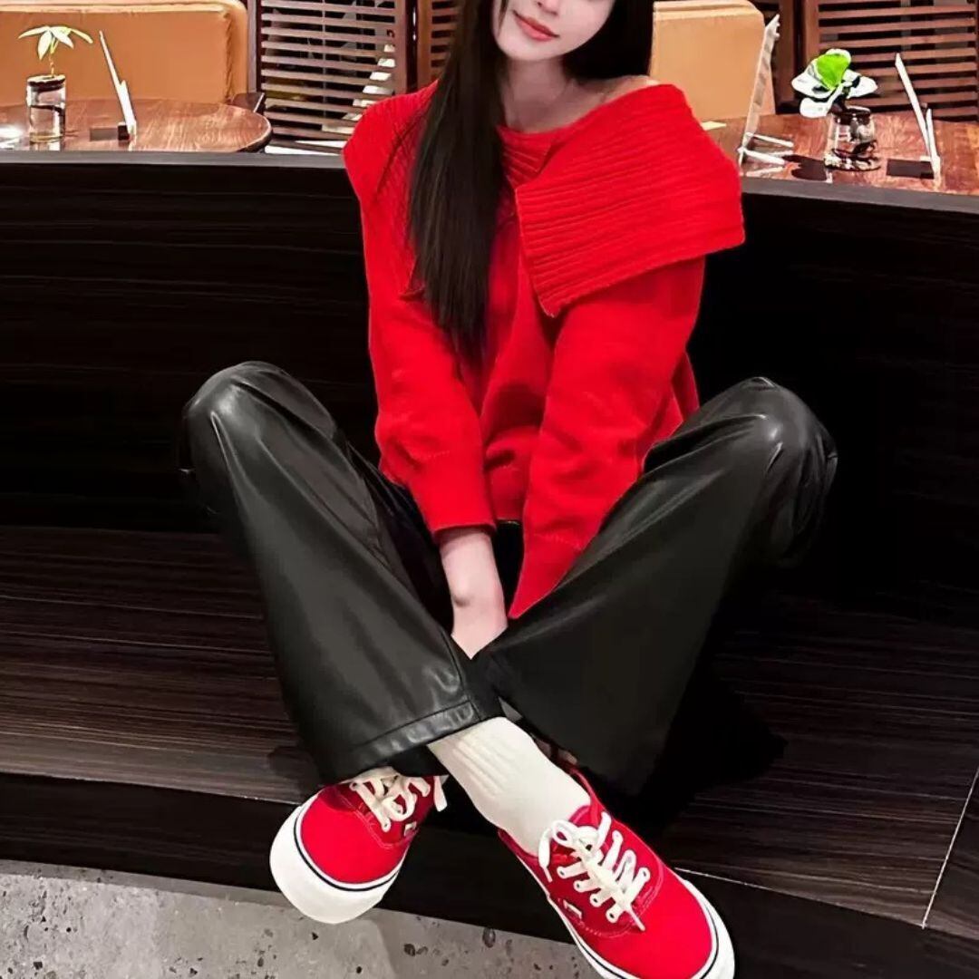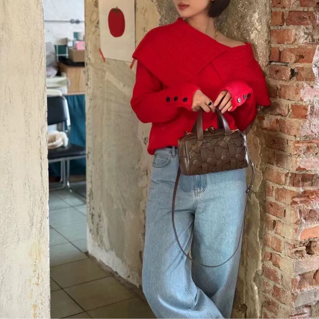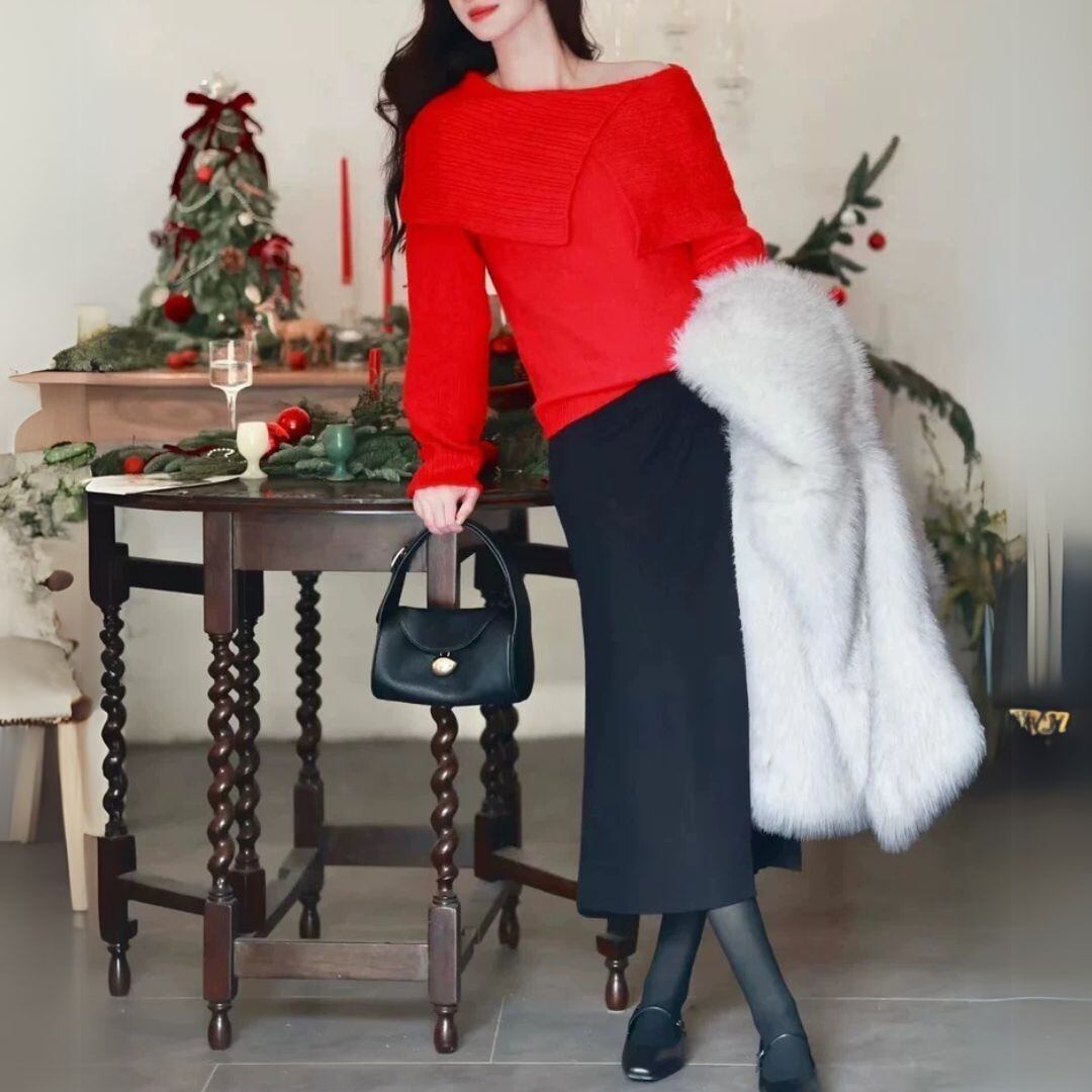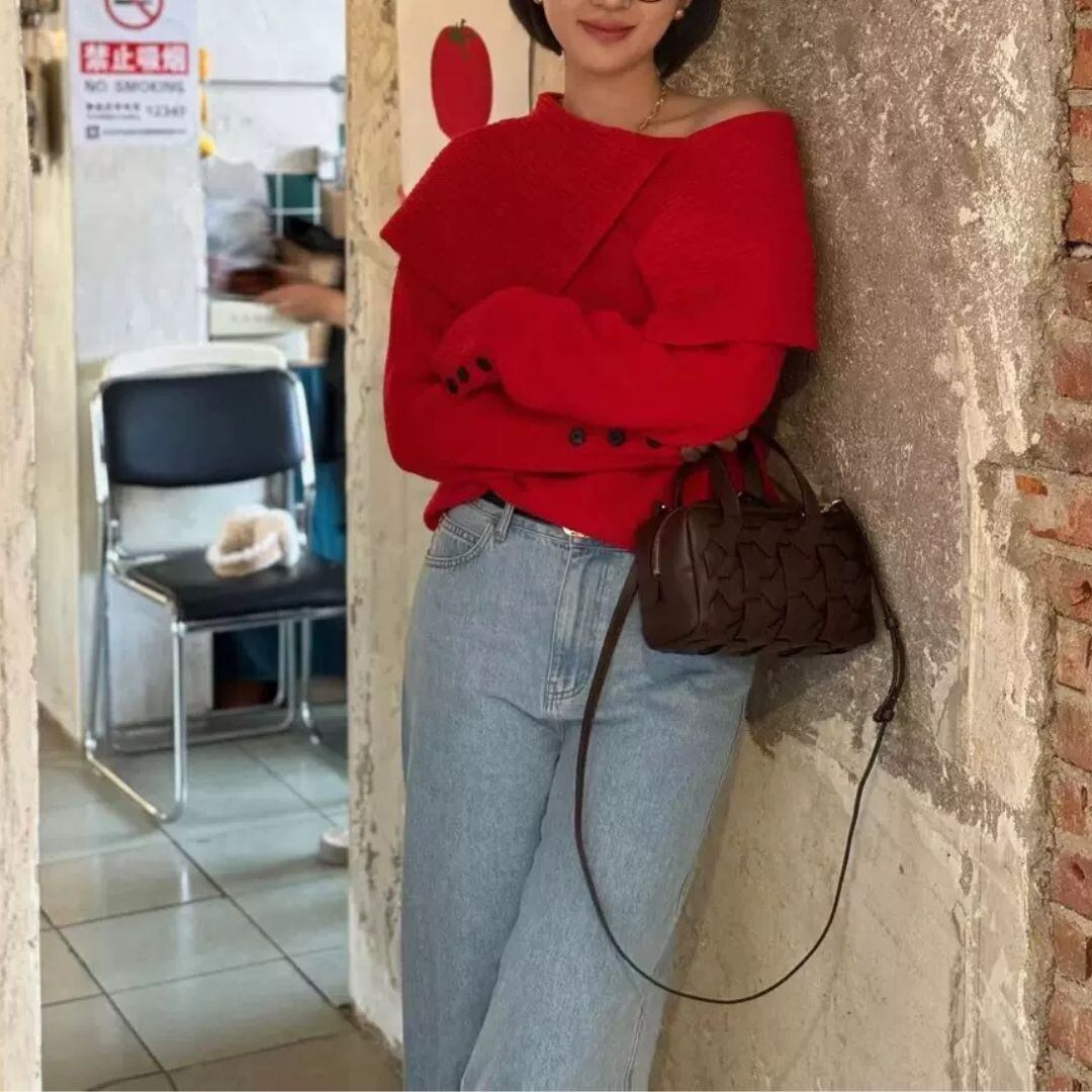 大人 華やか レッド ワンショルダーknitです♡