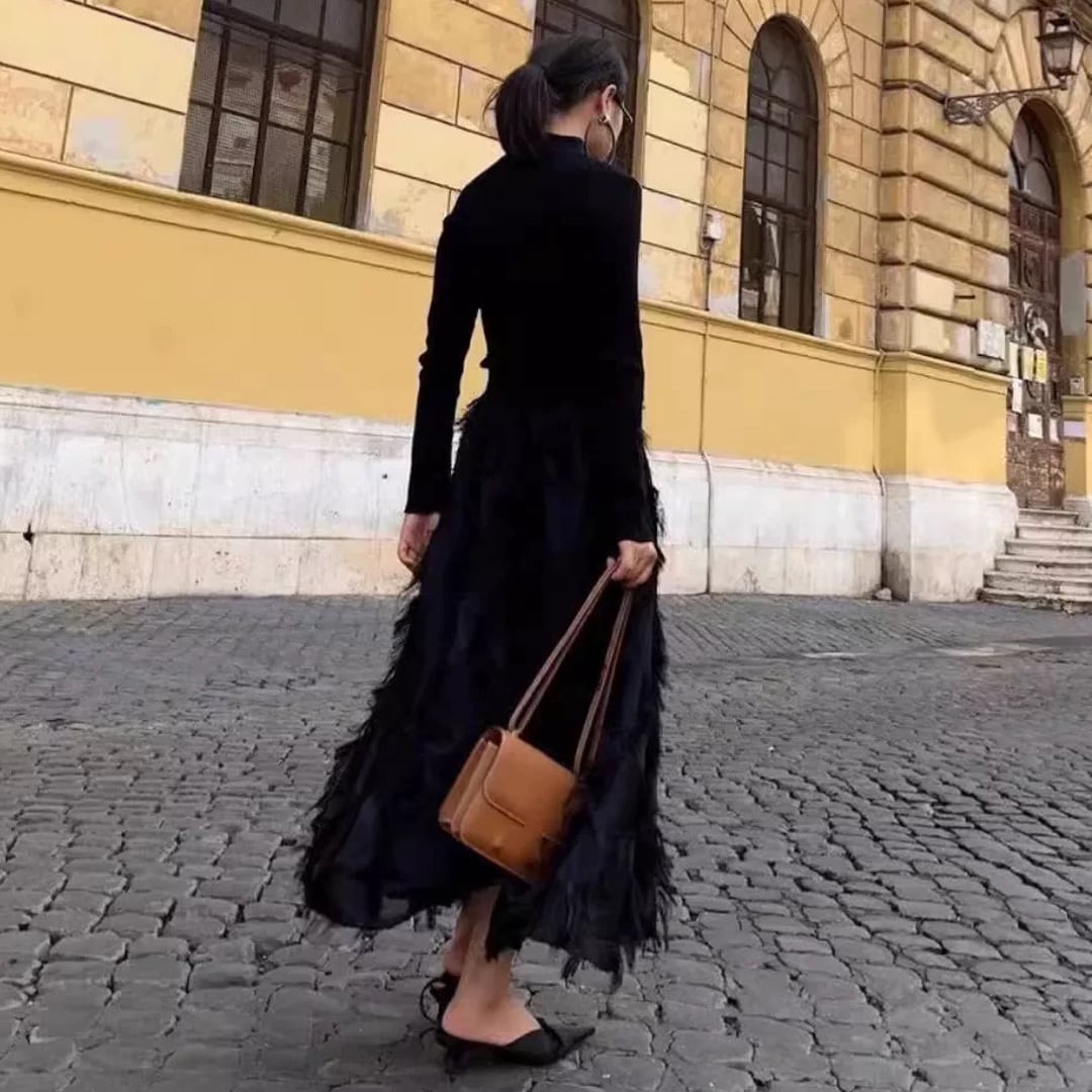 ♡高品質 ハイネック スリムフィットXジャガード マキシ丈スカート ドッキングドレス