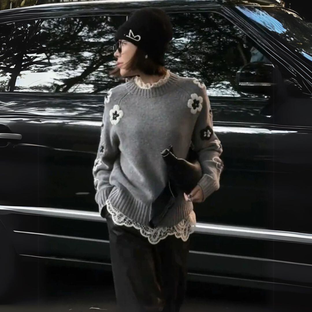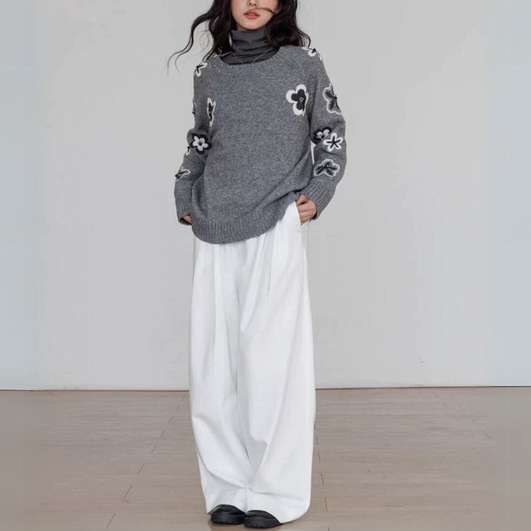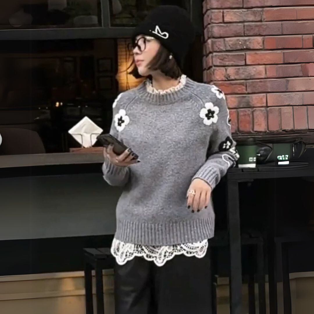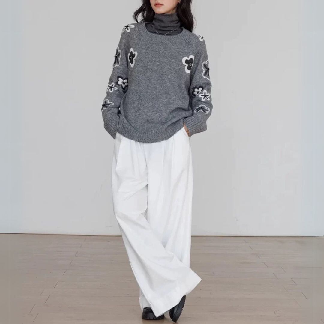 大人 カジュアル フラワー刺しゅう knitです♡