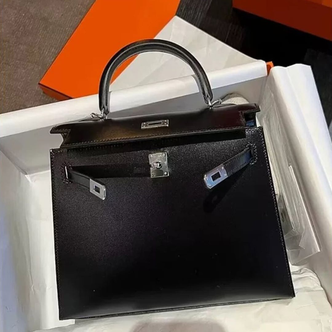 ♡牛革 (上品光沢 ) シルバーバックル ワンハンドル ストラップ付き キー付き