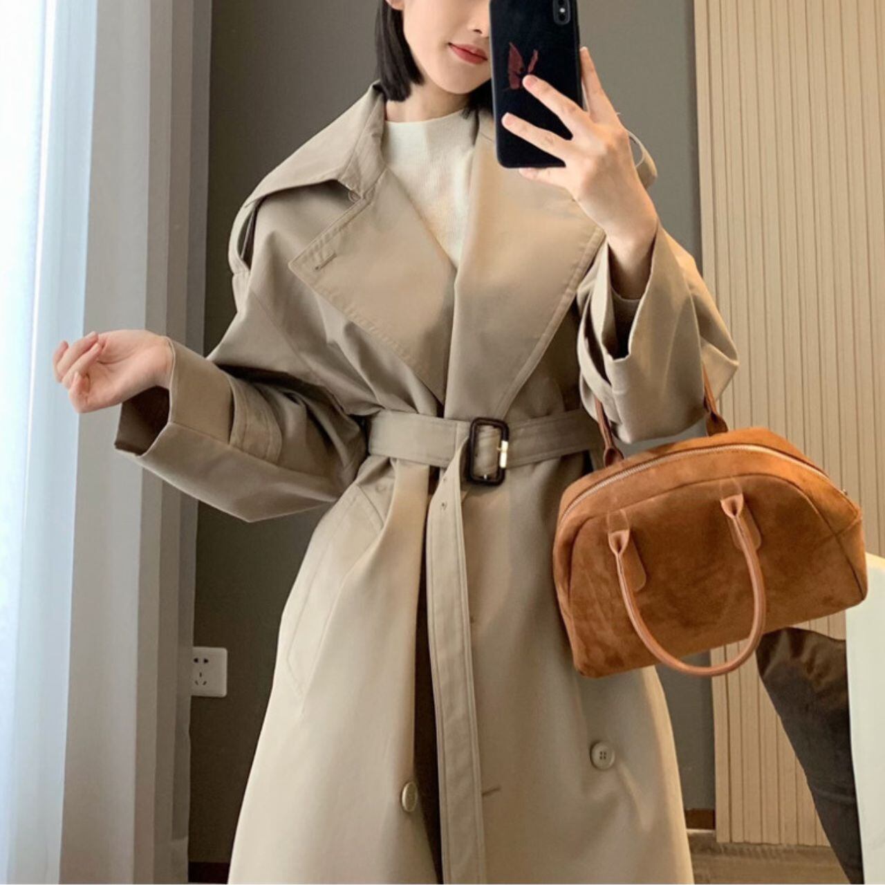ゆったり ドロップショルダー ベーシックデザイン 高品質トレンチコート