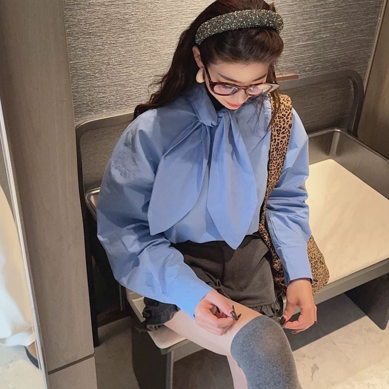♡レースアップボー ドロップショルダー ゆったり シャツブラウス