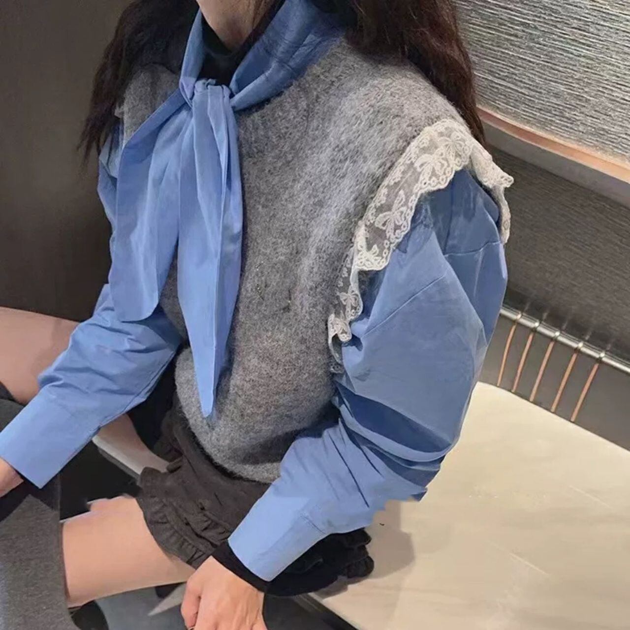 ♡ミドルゲージニット ラウンドネック レースフリル ベスト