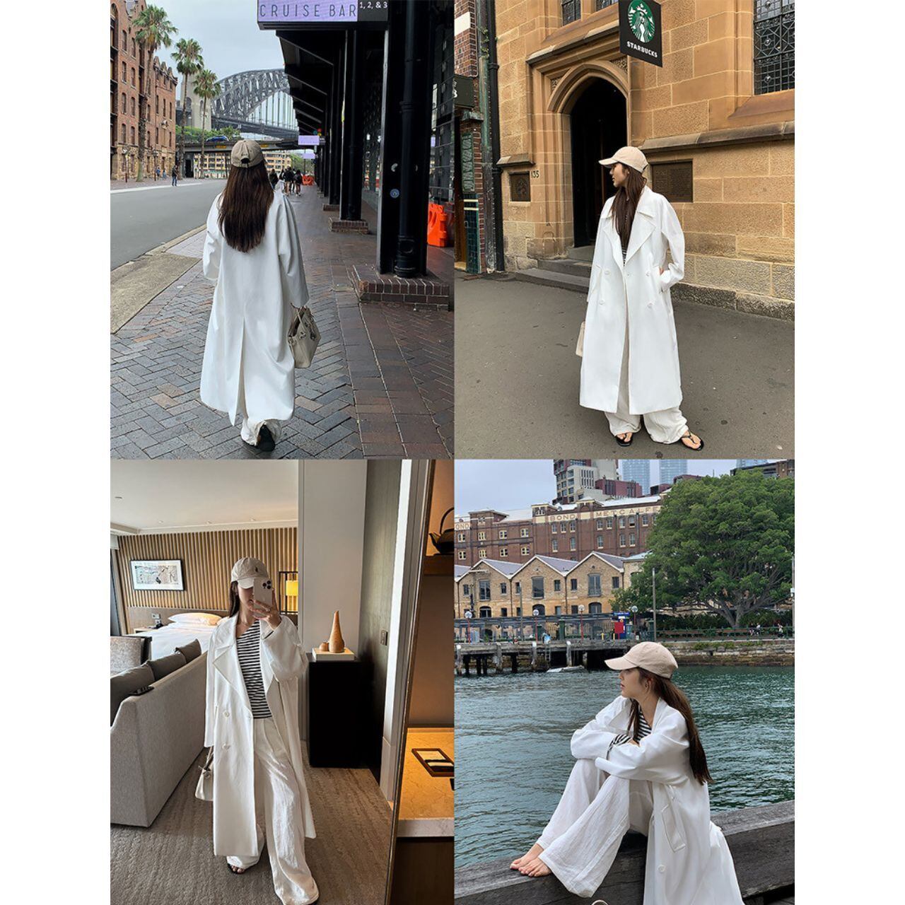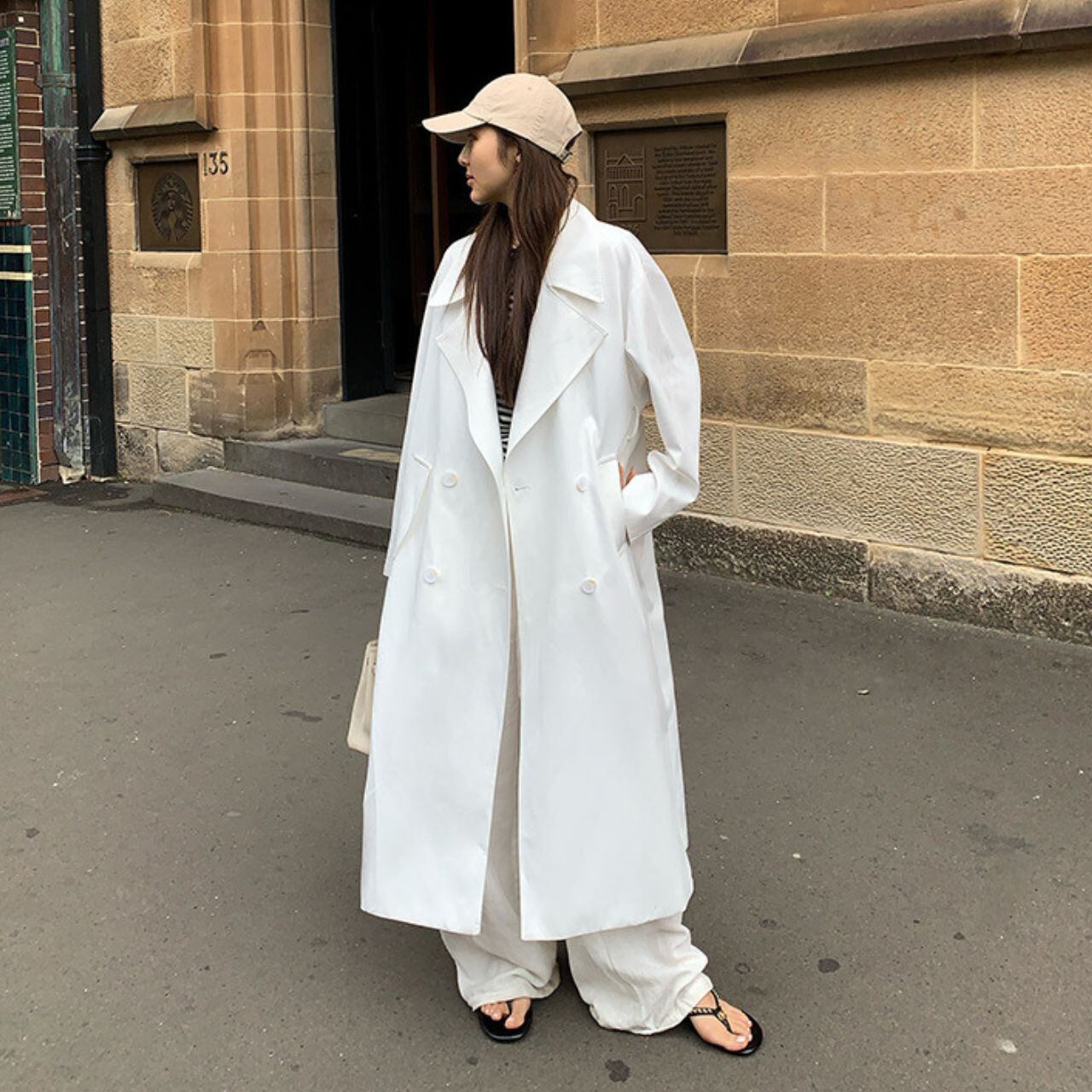 ♡Wブレスト ロング丈 ゆったり ドロップショルダー シンプル 共布ベルト付